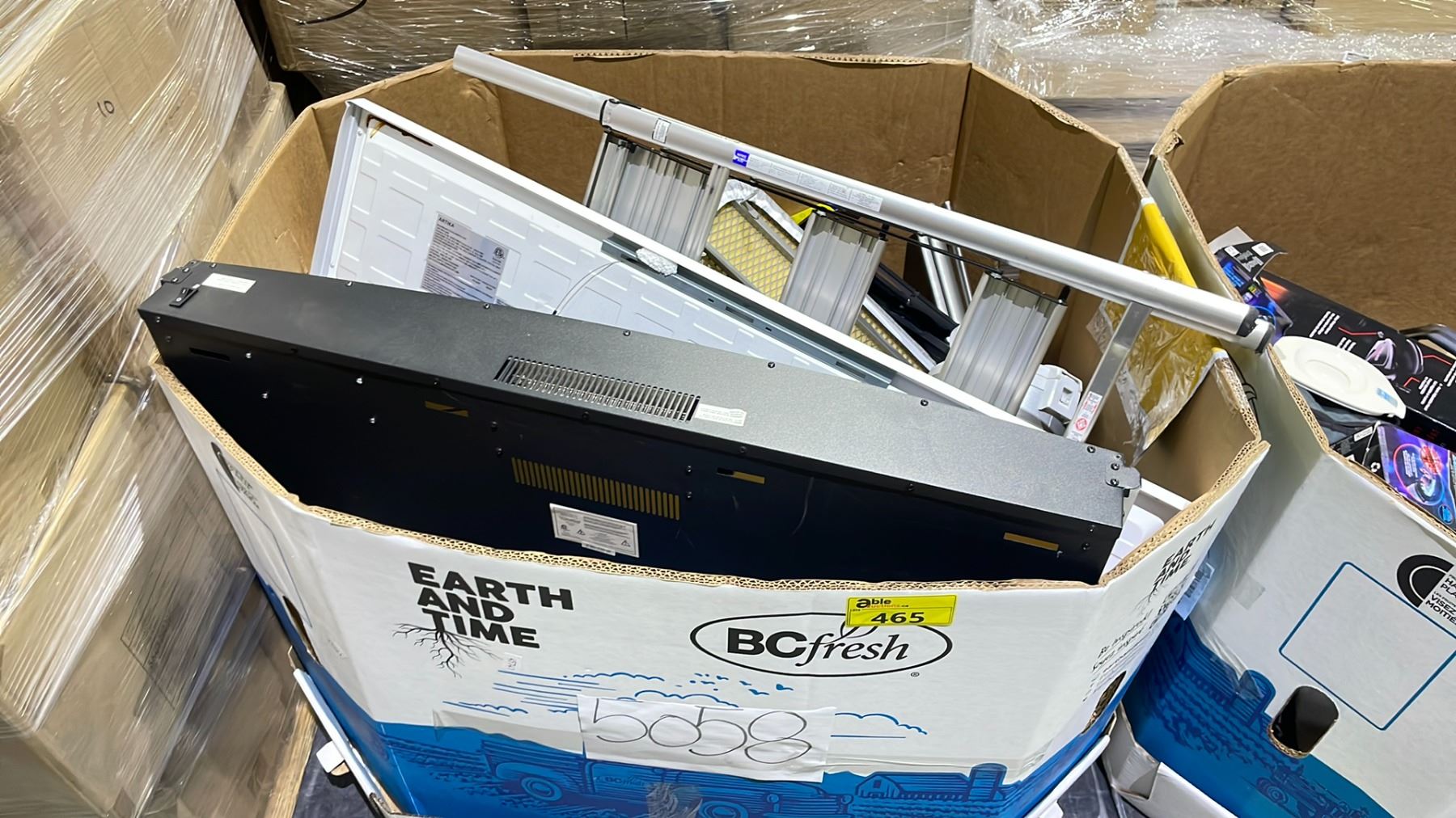 GAYLORD OF ASSORTED ITEMS INCLUDING; ELECTRIC FIREPLACE, STEP LADDER, WATER DISPENSER & MORE (UNKNOWN WORKING CONDITION, MAY BE MISSING PIECES)