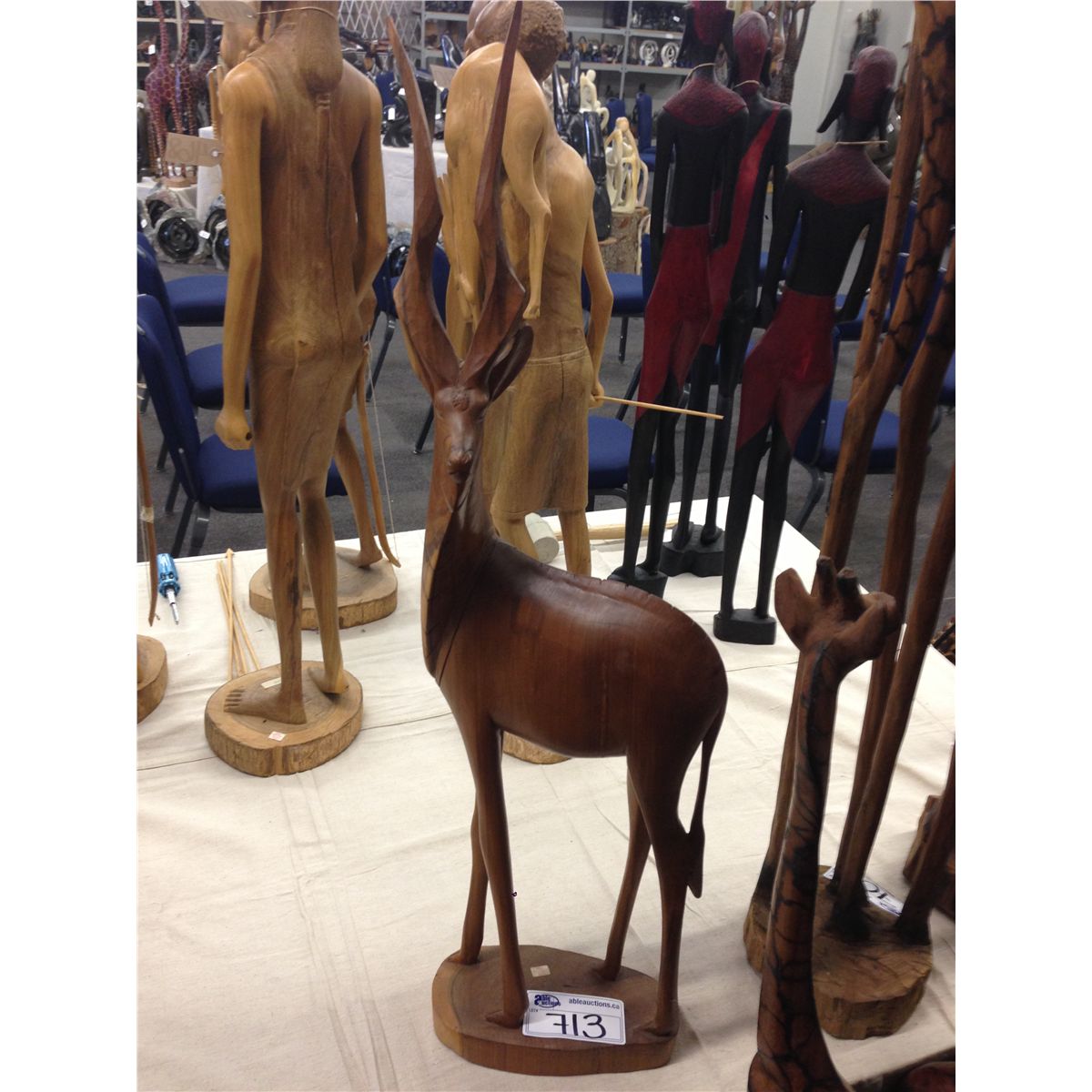 GAZELLE, CARVED FROM A SINGLE PIECE OF AFRICAN MAHOGANY, 36" TALL