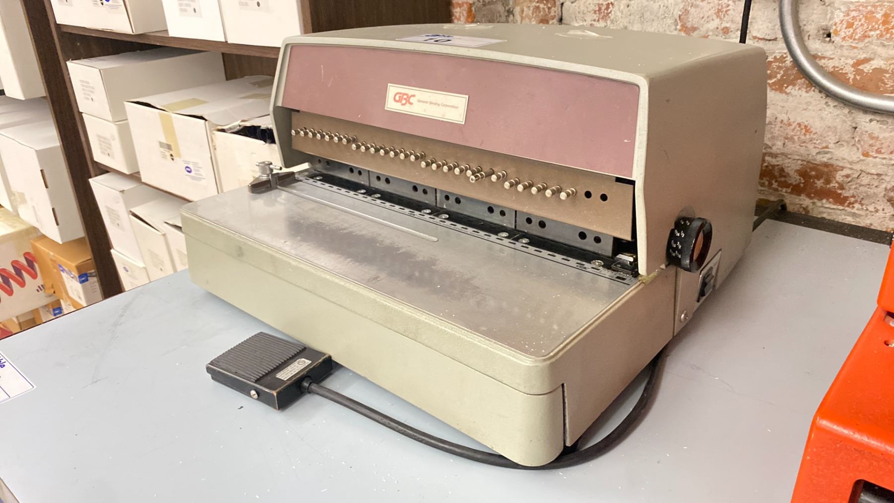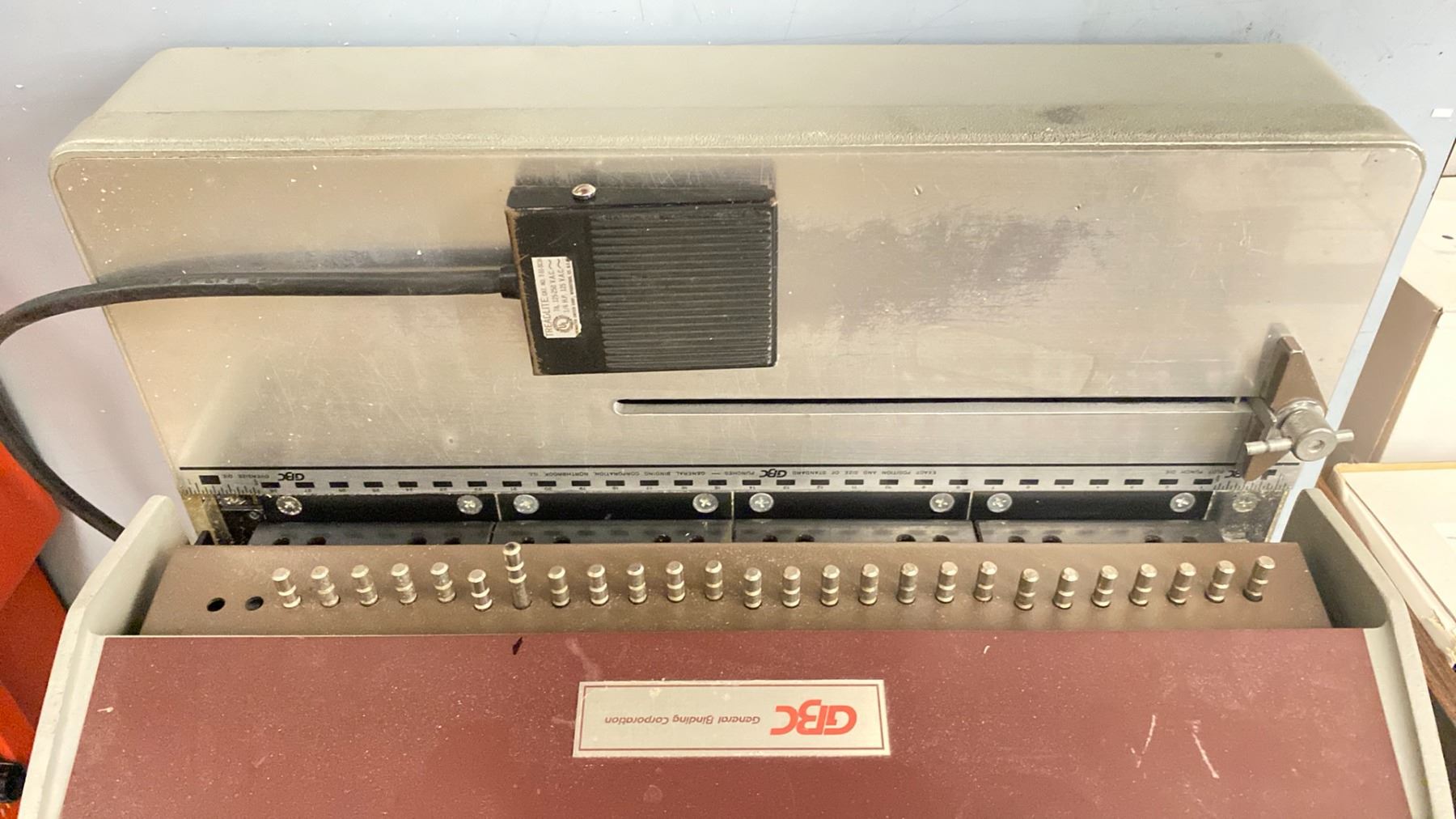GBC GENERAL BINDING COMPANY COMMERCIAL ELECTRIC TABLE TOP RING BINDER WITH FOOT CONTROL