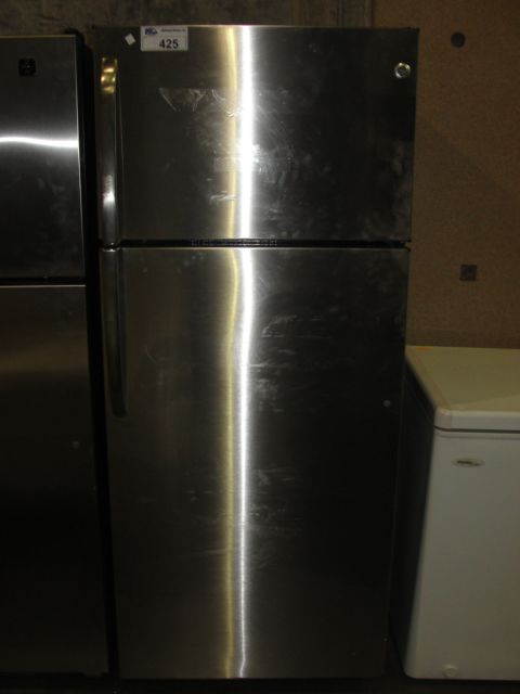 GE STAINLESS STEEL 2 DOOR FRIDGE - PLUGGED IN AND WORKING