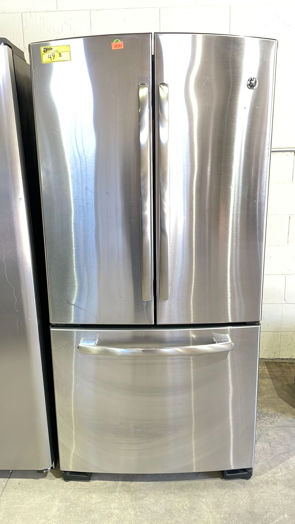 GE STAINLESS STEEL FRENCH DOOR FRIDGE WITH PULL-OUT FREEZER 33" WIDE