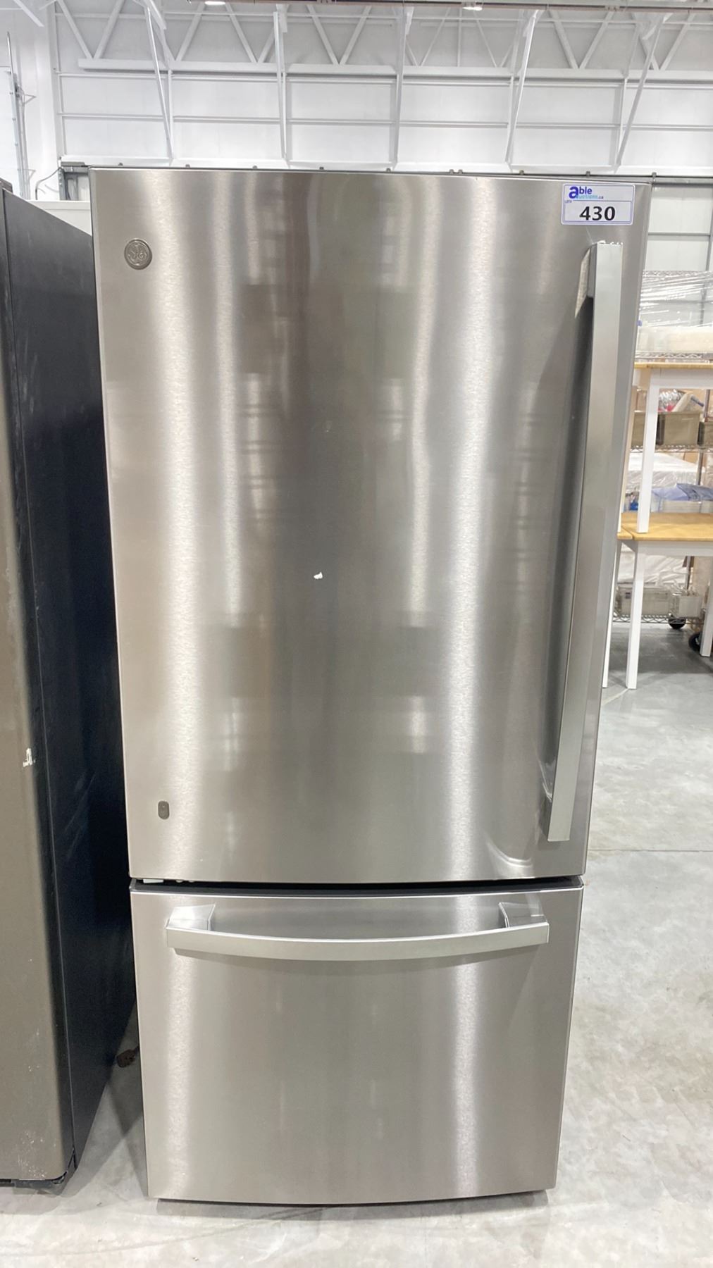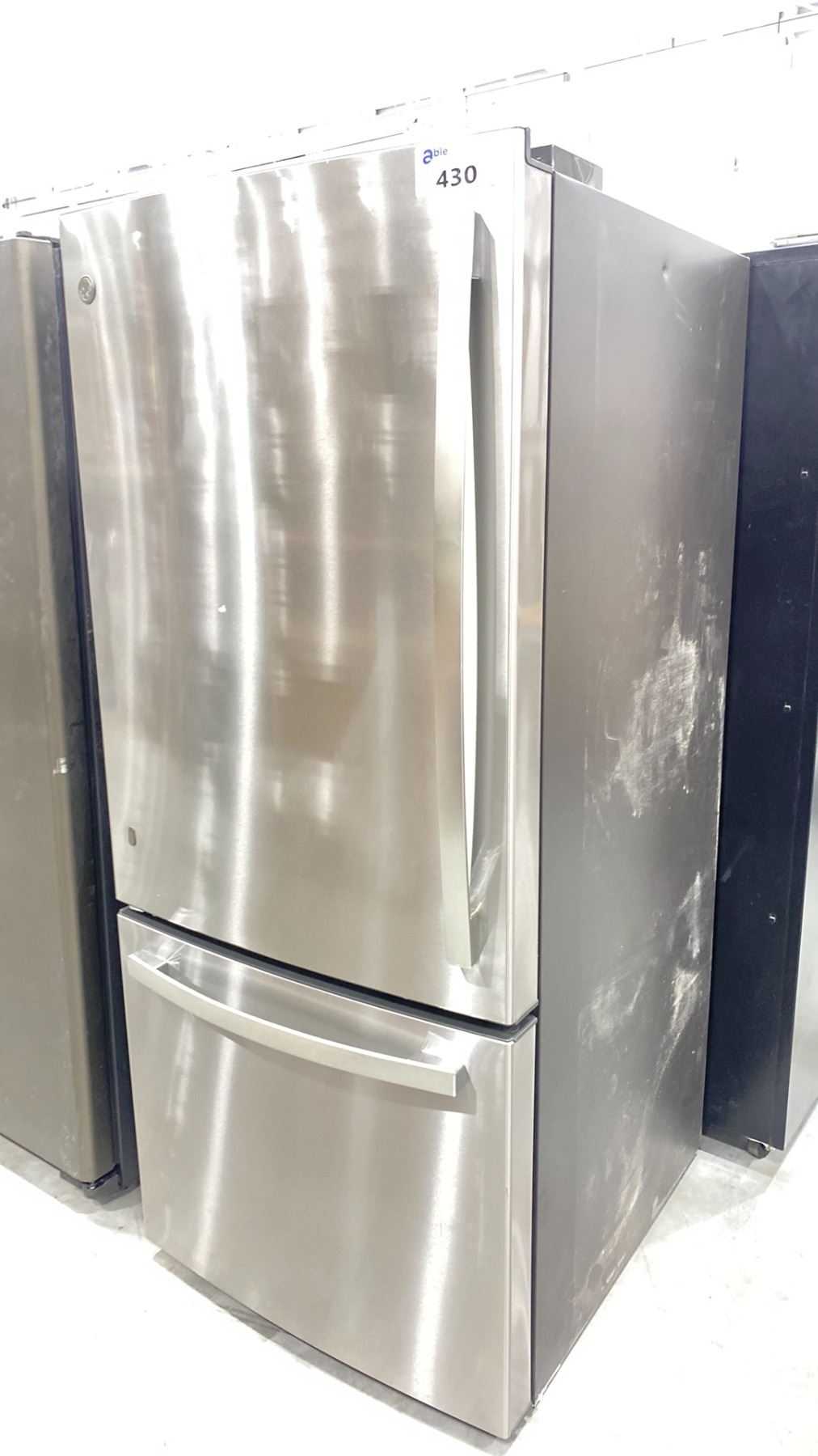 GE STAINLESS STEEL SWING OUT FRIDGE WITH ROLLOUT FREEZER 30"W