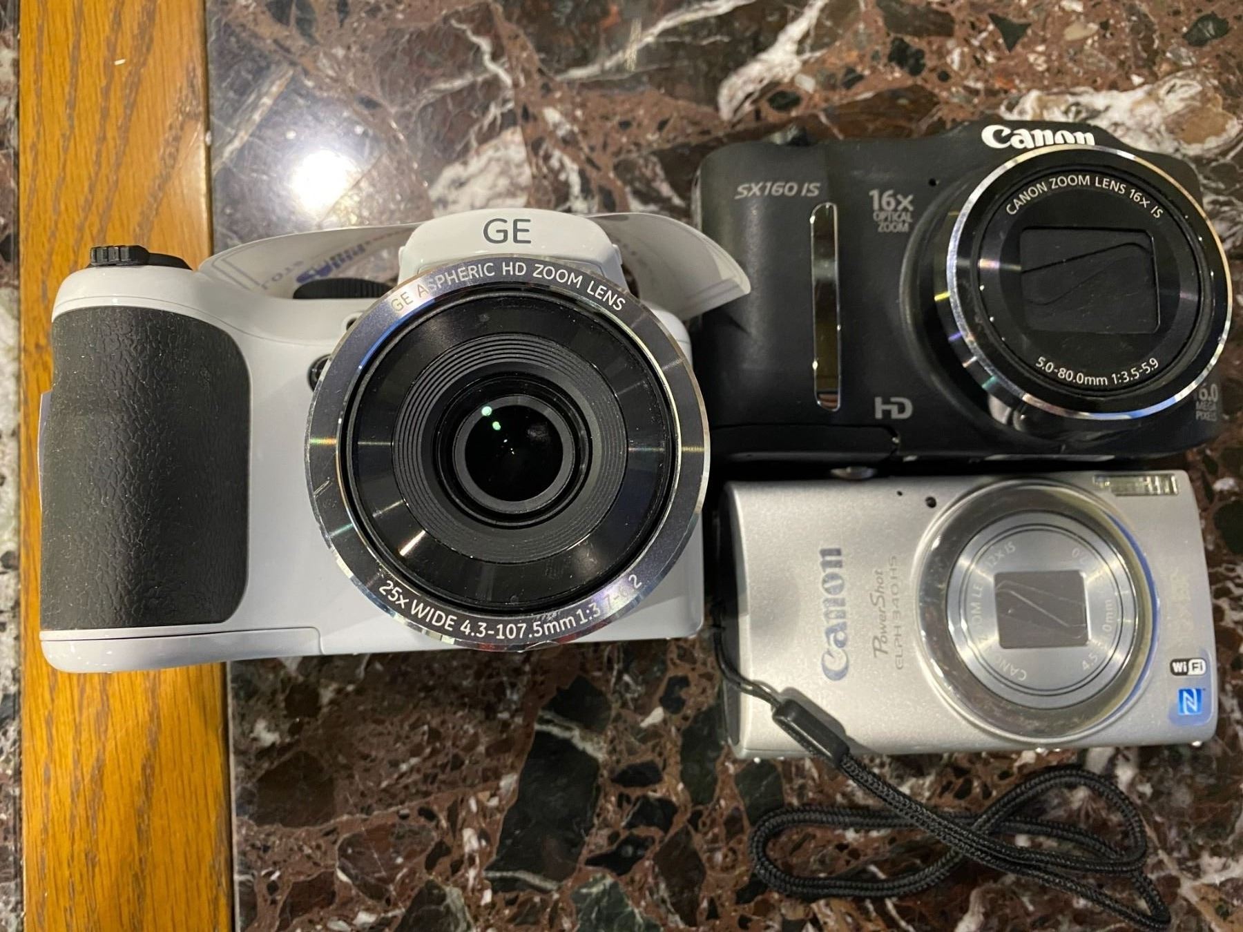 GE X450 16.0 MEGAPIXEL CAMERA, CANON SX160 IS 16.0 MEGAPIXEL CAMERA, & CANON POWERSHOT ELPH340HS CAMERA