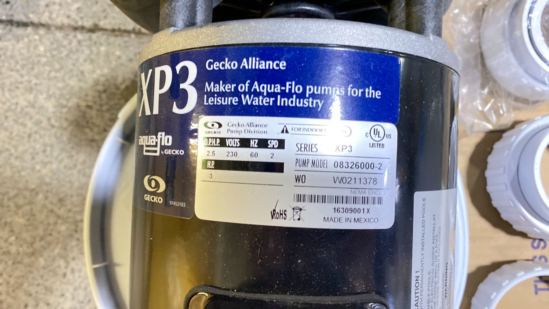 GECKO AQUA-FLO SPA POOL PUMP. XP3 2.5HP MODEL 08326000-3