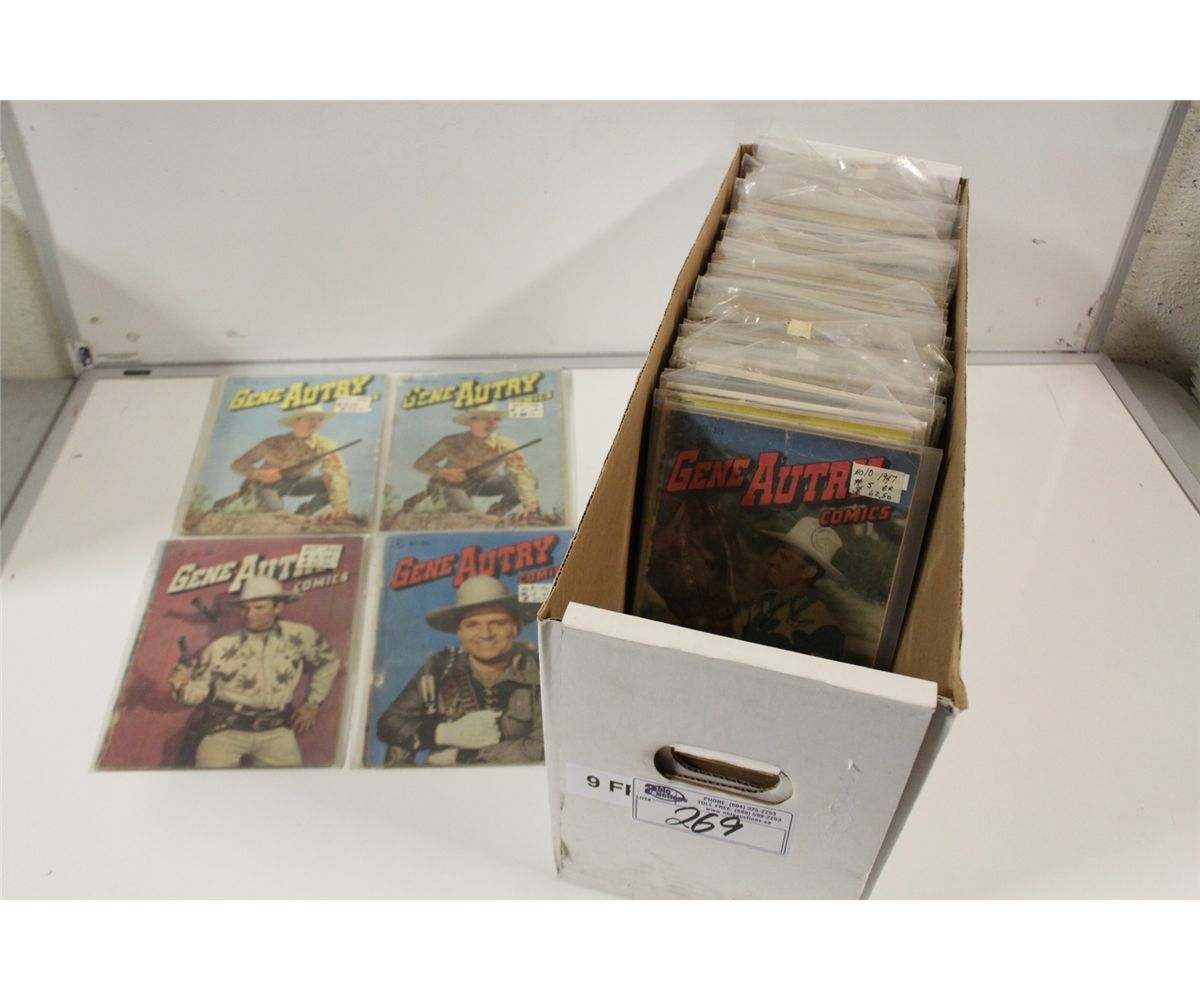 GENE AUTRY COMICS #3-113 NEAR COMPLETE SET! (1946-57) NEAR FULL LONG BOX WITH 1 TO 2 COPIES OF MOST ISSUES FROM THE LONG RUNNING SERIES! MIXED GRADES LOWER TO MID GRADE AVG. INCLUDES SOME CANADIAN EDITIONS.