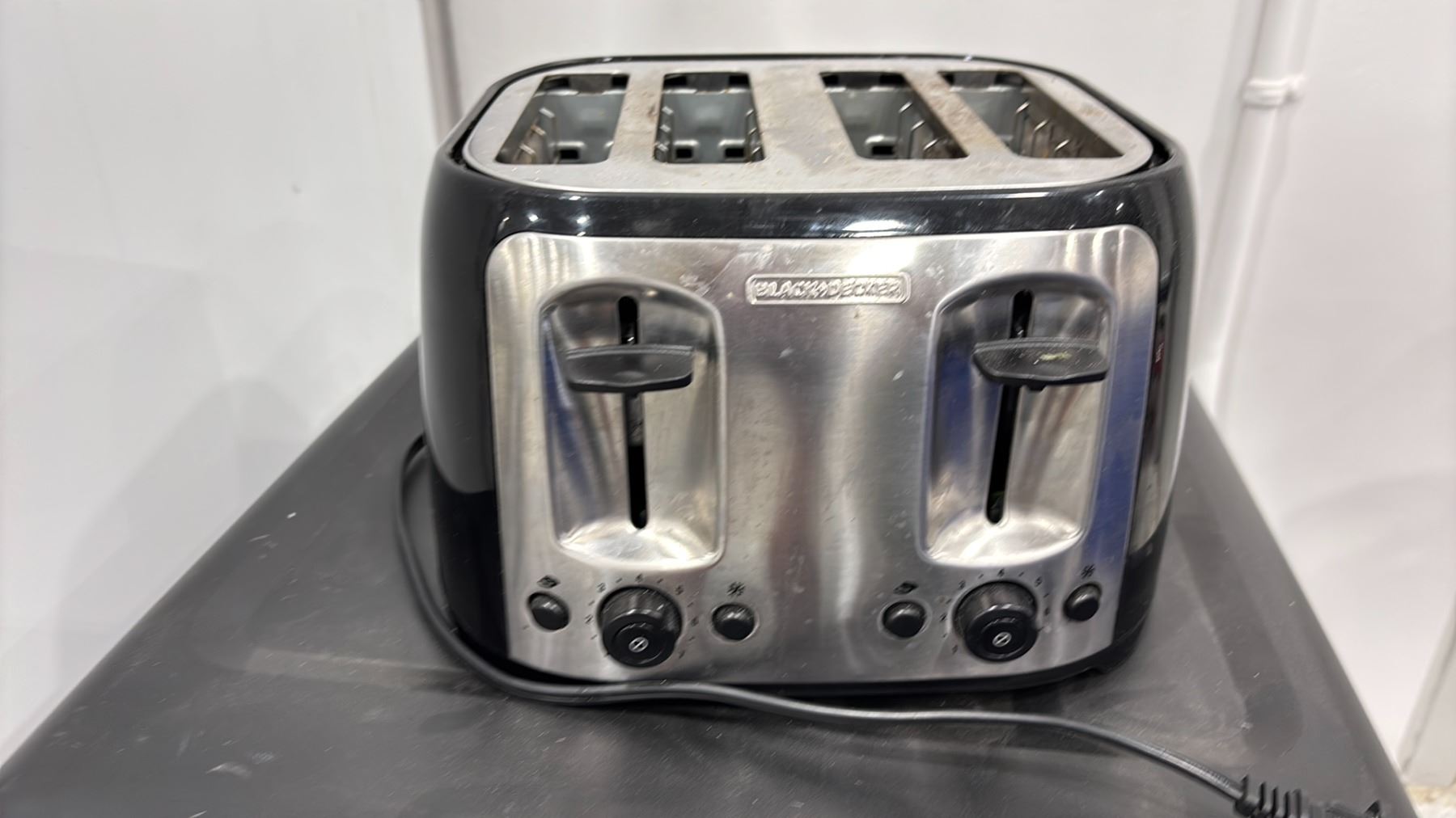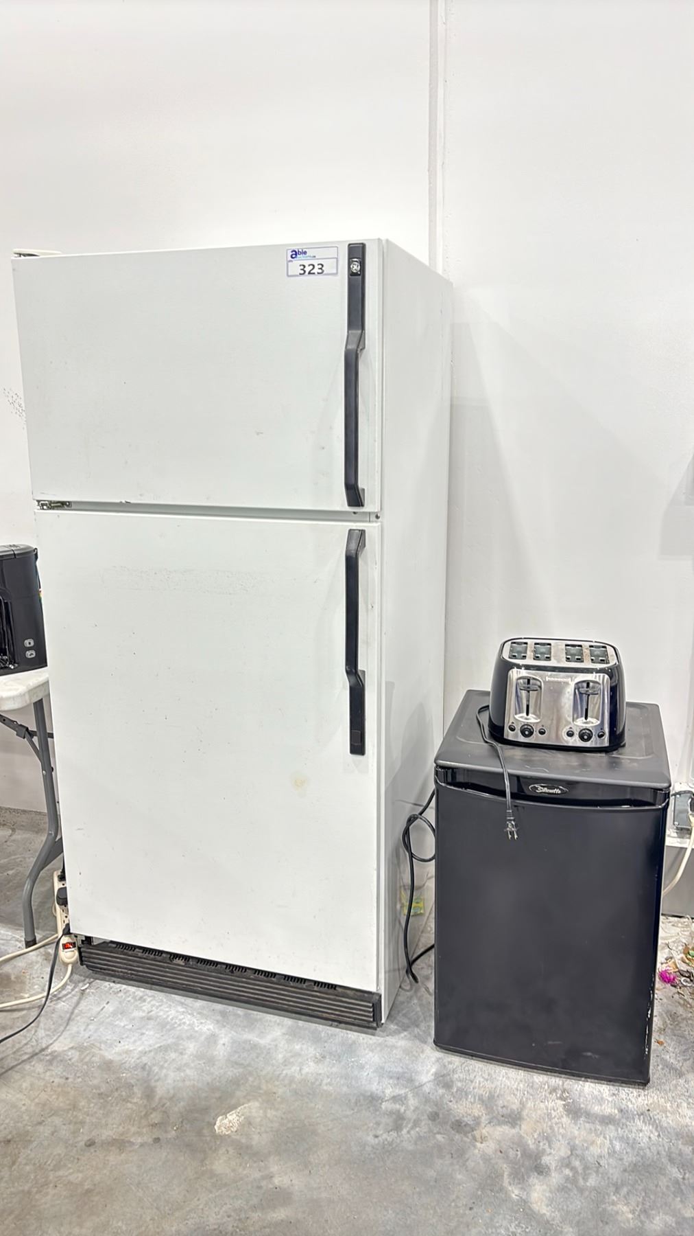 GENERAL ELECTRIC L18JZRLW-1 WHITE 30"W REFRIGERATOR ( CONTENTS NOT INCLUDED ), A BLACK SILHOUETTE 18"W BAR REFRIGERATOR & A STAINLESS STEEL BLACK + DECKER 4 SLICE TOASTER