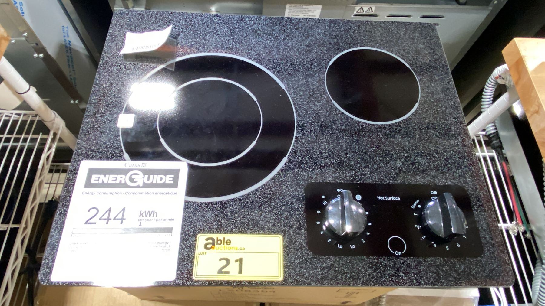 GENERAL ELECTRIC MODEL JP256BM2BB. BLACK 21" 2 ELEMENT CERAMIC RADIANT ELECTRIC COOKTOP SN FH706512C RETAIL PRICE $899.00