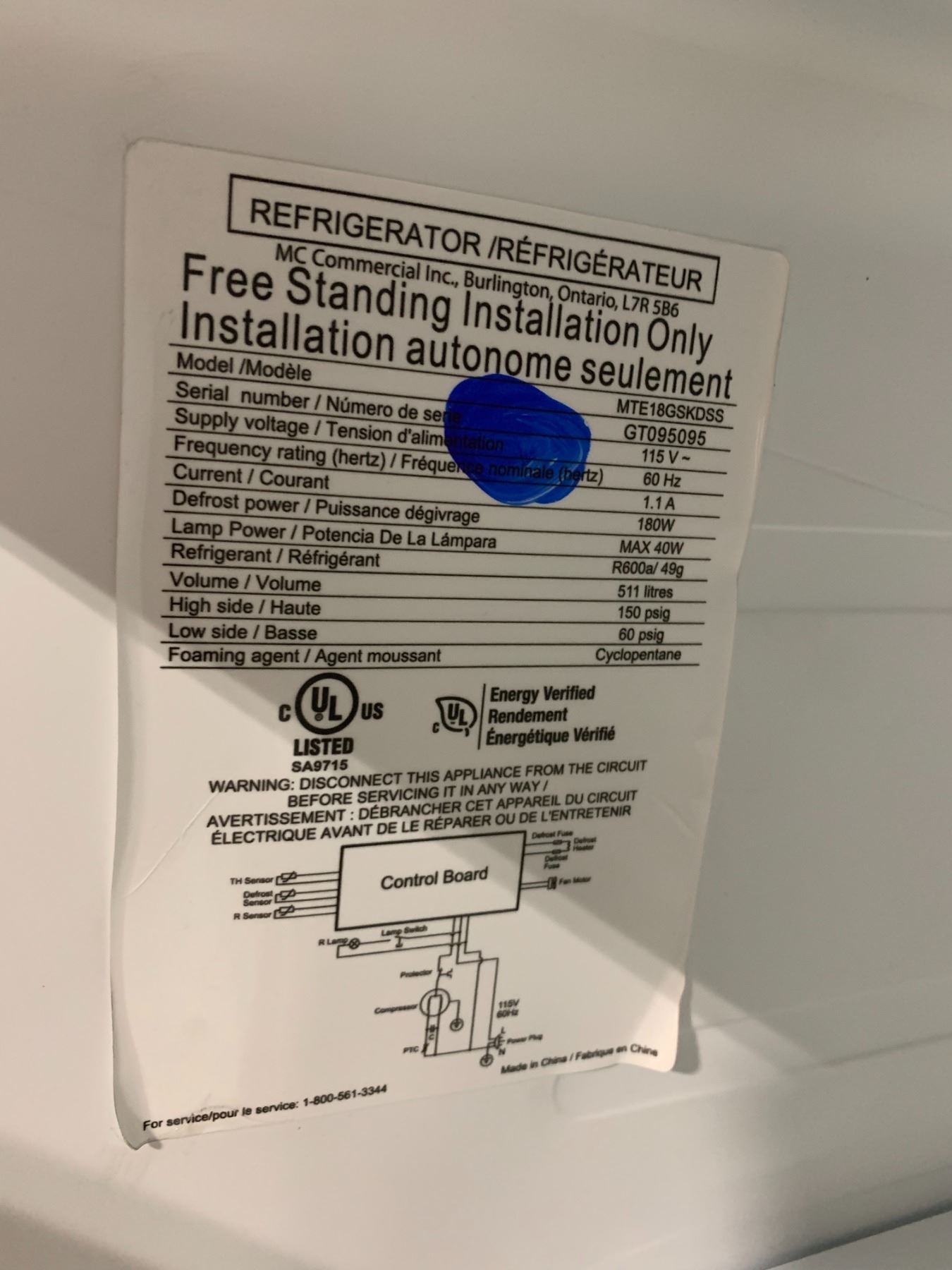GENERAL ELECTRIC MTE18GSKDSS STAINLESS STEEL TOP FREEZER REFRIGERATOR ( PARTS ONLY, COMPRESSOR NOT WORKING )