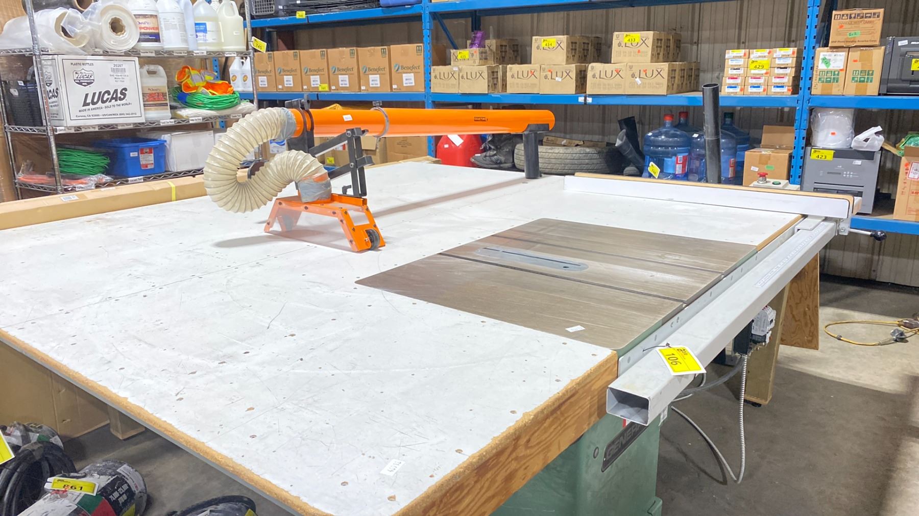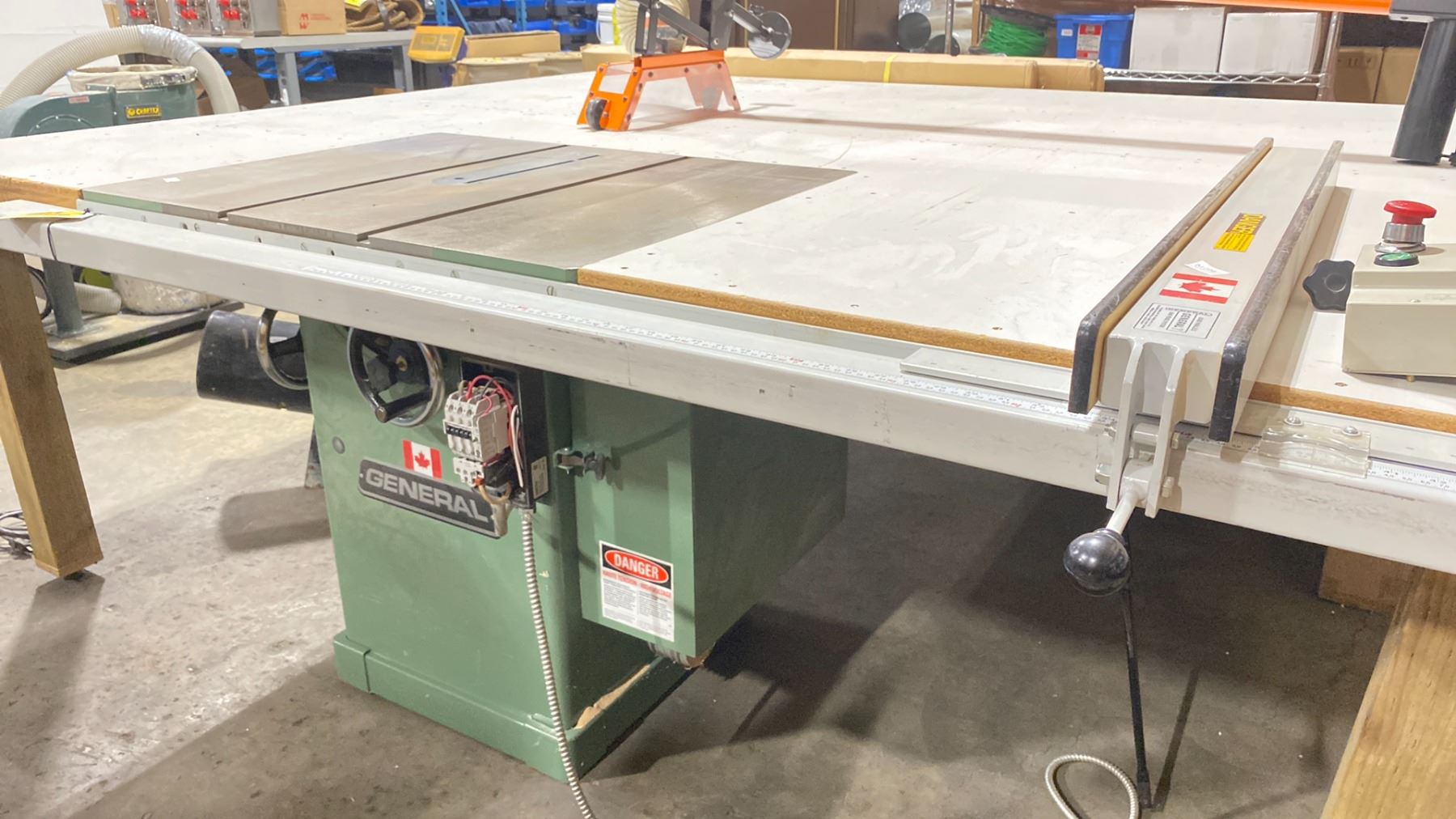 GENERAL INDUSTRIAL TABLE SAW WITH EXAKTOR DUST CONTROL SYSTEM - APPROX.8FT X 8FT WORK TABLE SURFACE INCLUDED
