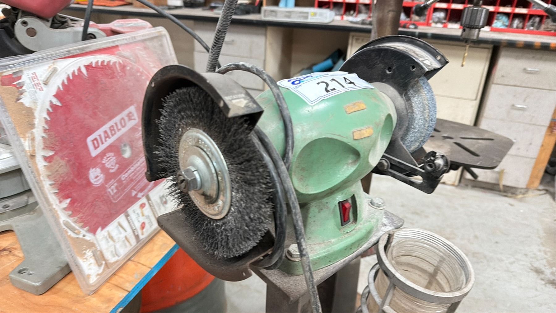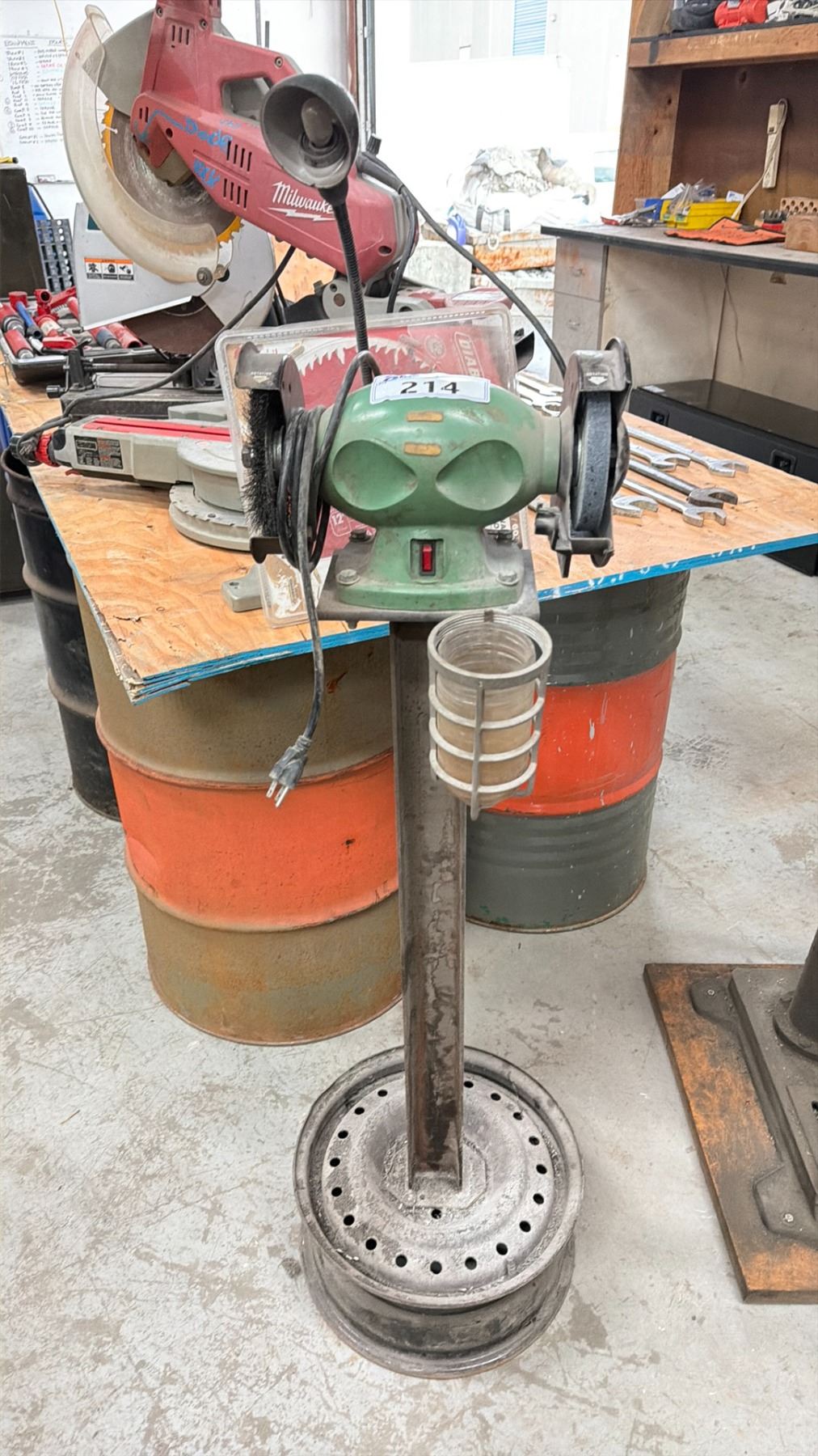 GENERAL INTERNATIONAL 6" GREEN LOW REVOLUTION BENCH GRINDER ON PEDESTAL STAND