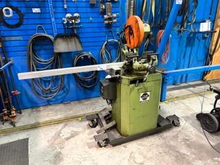GENESSIS VARIABLE SPEED ELECTRIC INDUSTRIAL METAL CUTTING CHOP SAW ON MOBILE EQUIPMENT CART