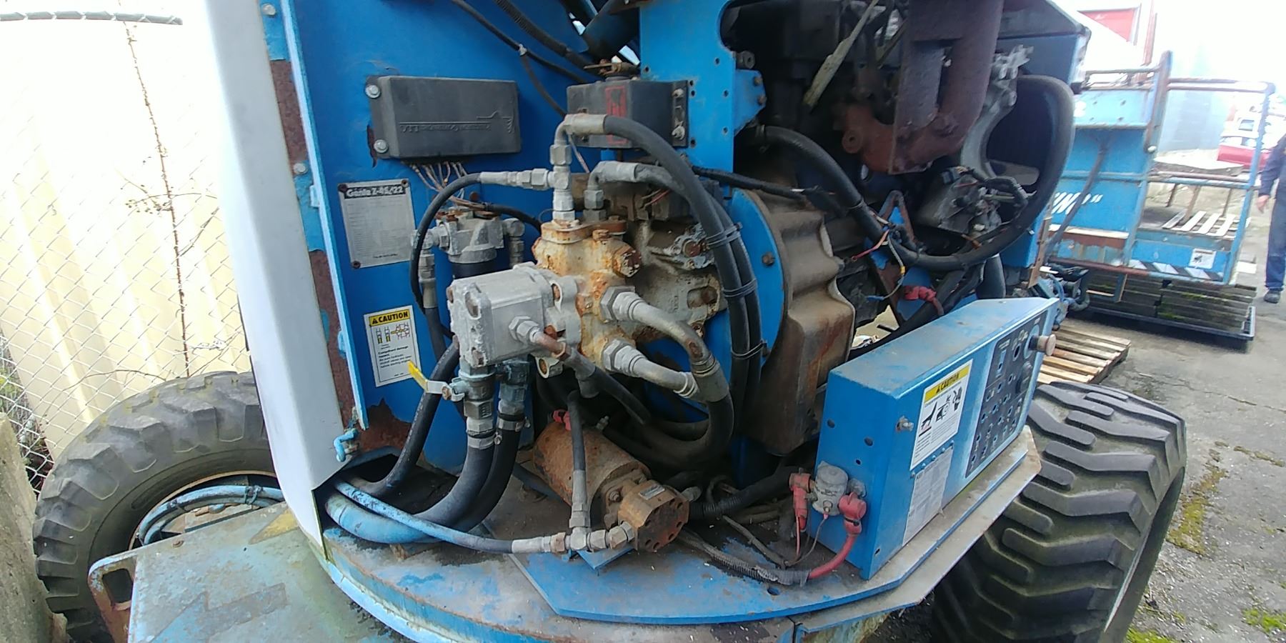 GENIE BOOM LIFT MODEL Z-45/22 4X4. PARTS ONLY. WAS RUNNING AND VANDALS STRIPPED OUT SWITCHES AND WIRING, MOTOR INTACT. FORD 4 CYL. MODEL 5C-199-BA