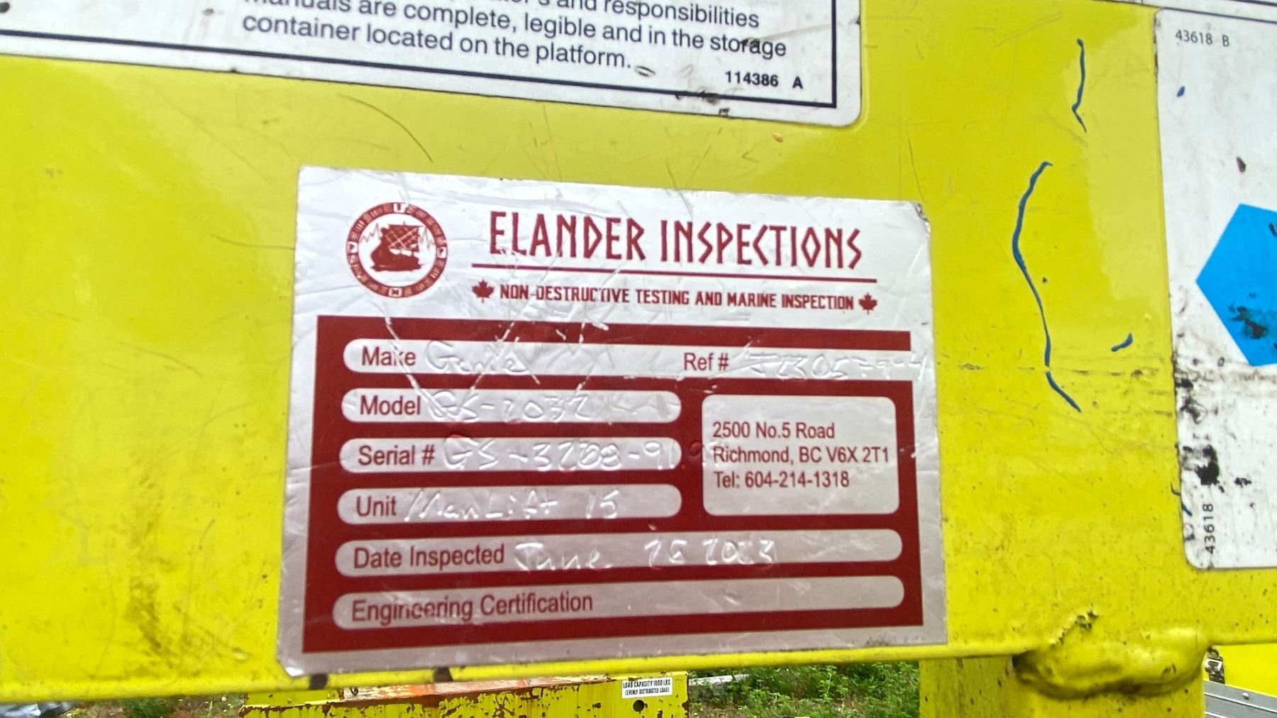 GENIE MODEL GS2032 ELECTRIC MANLIFT, YELLOW, HOUR METER READS 477 (HOURS NOT VERIFIED) PARTS ONLY, DOES NOT RUN, SERIAL #GS43208-91 *LOCATED OFFSITE/RICHMOND, THU MAY 29 & FRI MAY 30 PICKUP ONLY