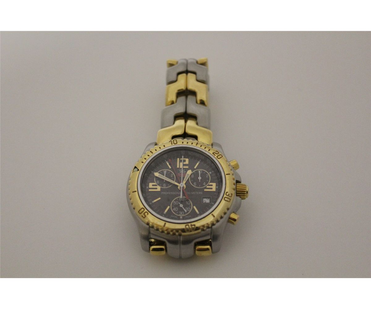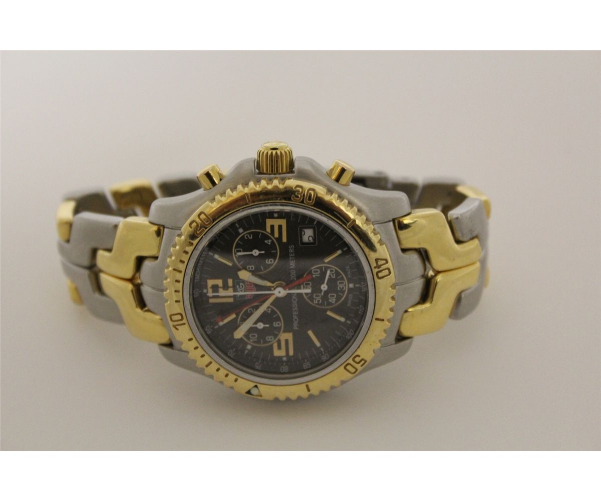 GENTS STAINLESS STEEL & 18 KT. YELLOW GOLD TAG HEUER LINK WRIST WATCH, QUARTZ MOVEMENT FEATURING A SAPPHIRE CRYSTAL. REPLACEMENT VALUE $ 3750.00