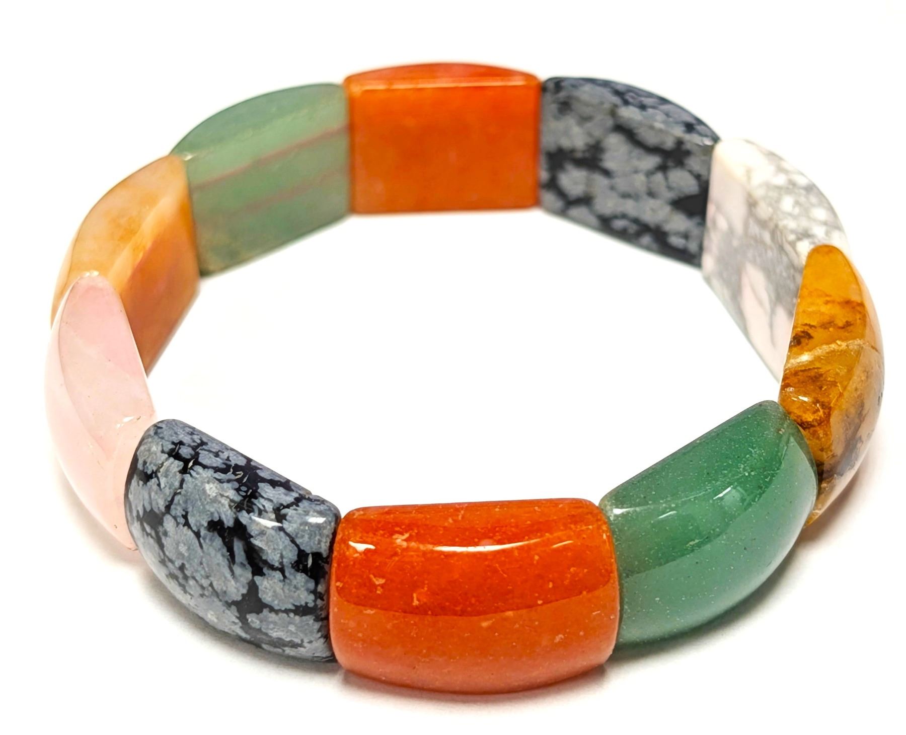 GENUINE MULTI GEMSTONE (GREEN JADE, OBSIDIAN, PEARCH AVENTURINE ETC) BRACELET FLEXIBLE, SUGGESTED RETAIL VALUE $200
