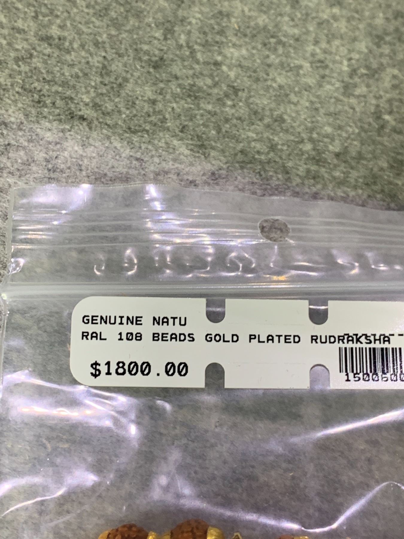 GENUINE NATURAL 108 BEADS GOLD PLATED RUDRAKSHA JAAP MALA RETAIL $1800