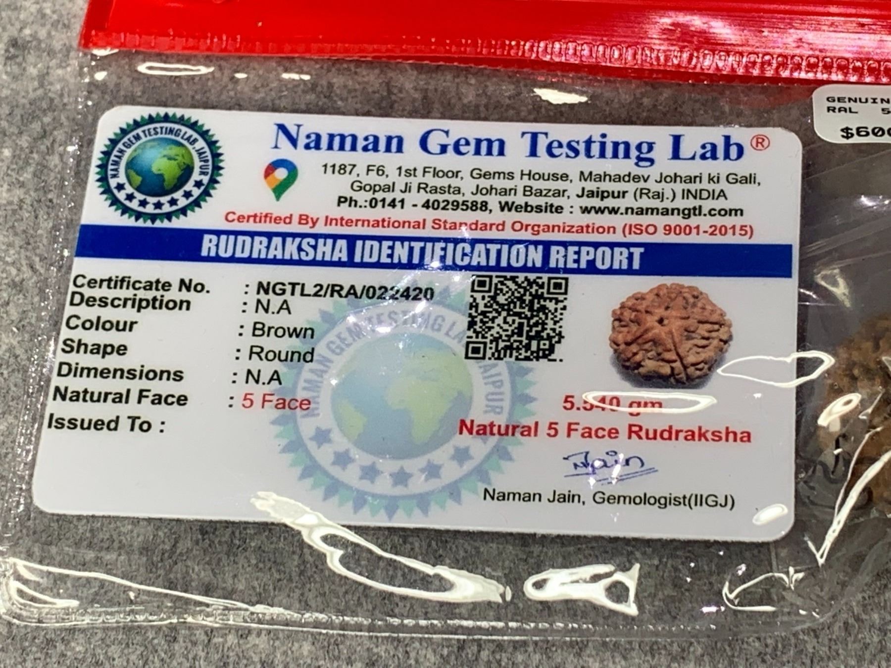 GENUINE NATURAL 5 FACE RUDRAKSHA RETAIL $600