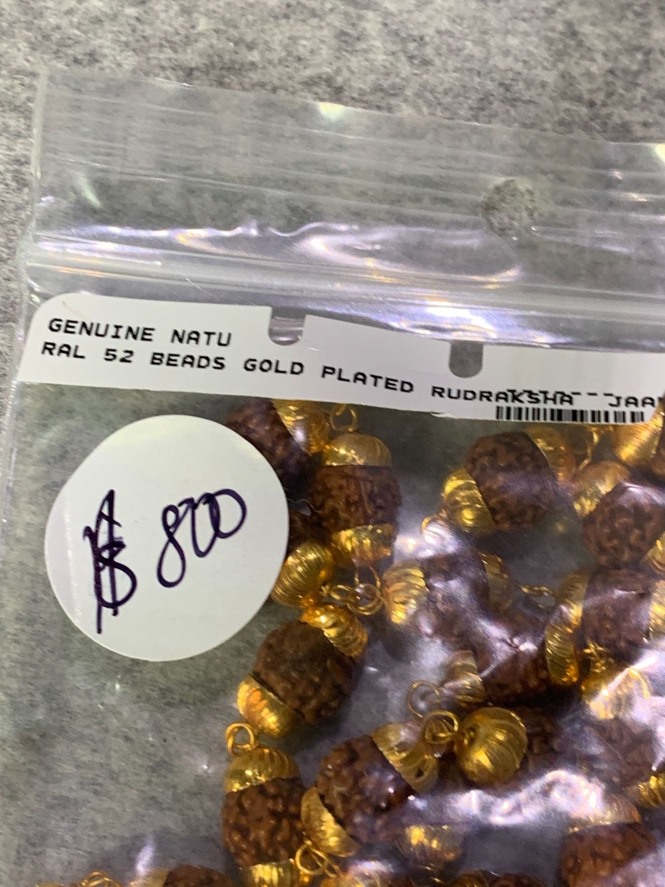 GENUINE NATURAL 52 BEADS GOLD PLATED RUDRAKSHA JAAP RETAIL $800