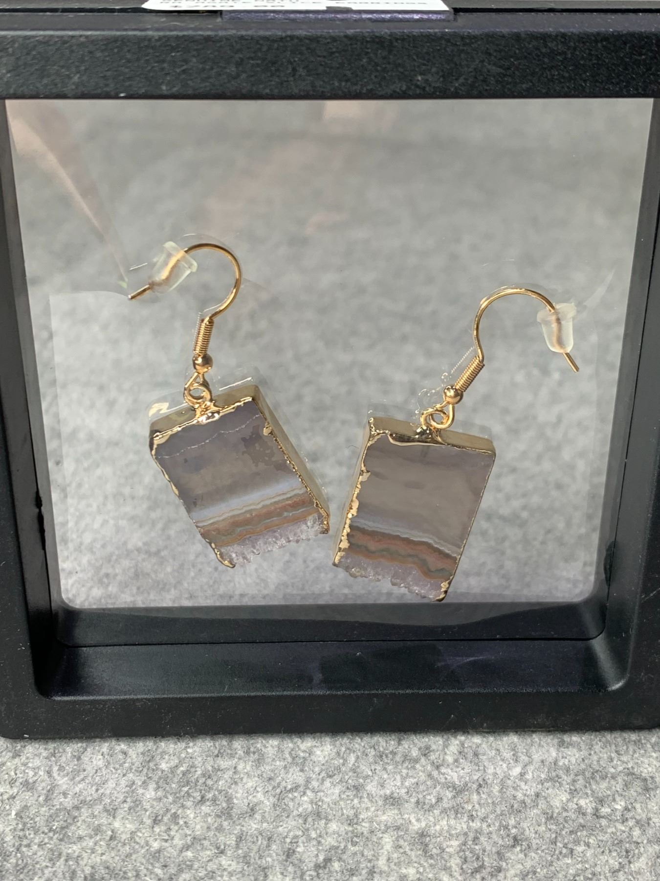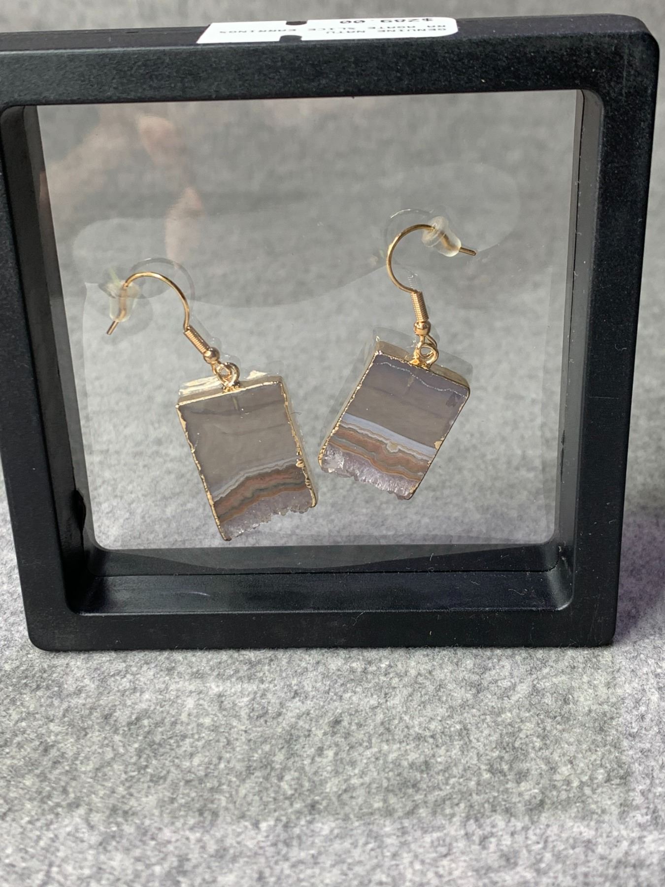 GENUINE NATURAL AGATE SLICE EARRINGS RETAIL $289