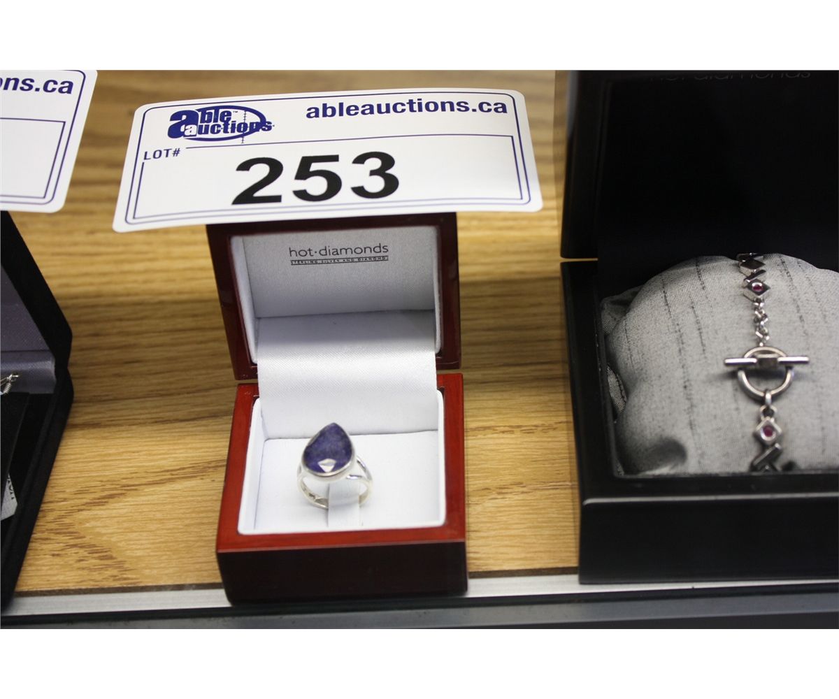 GENUINE PEAR CUT BLUE SAPPHIRE STERLING SILVER RING