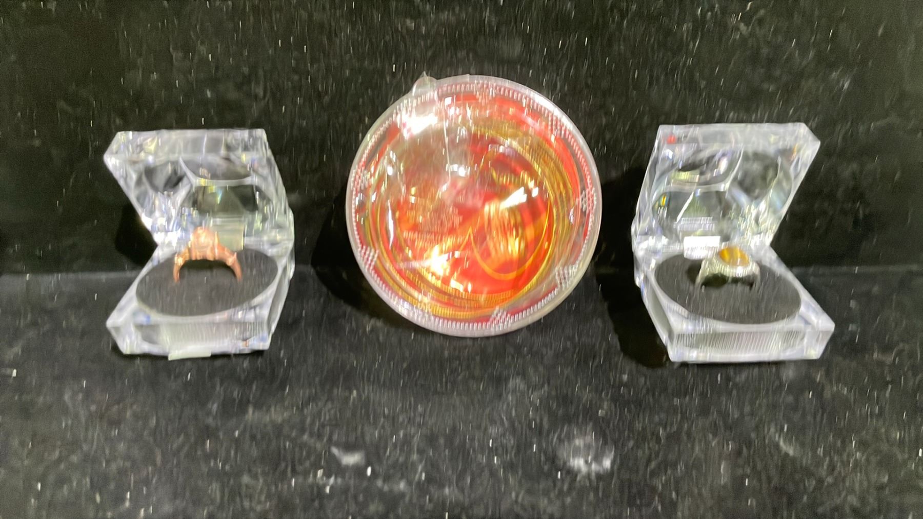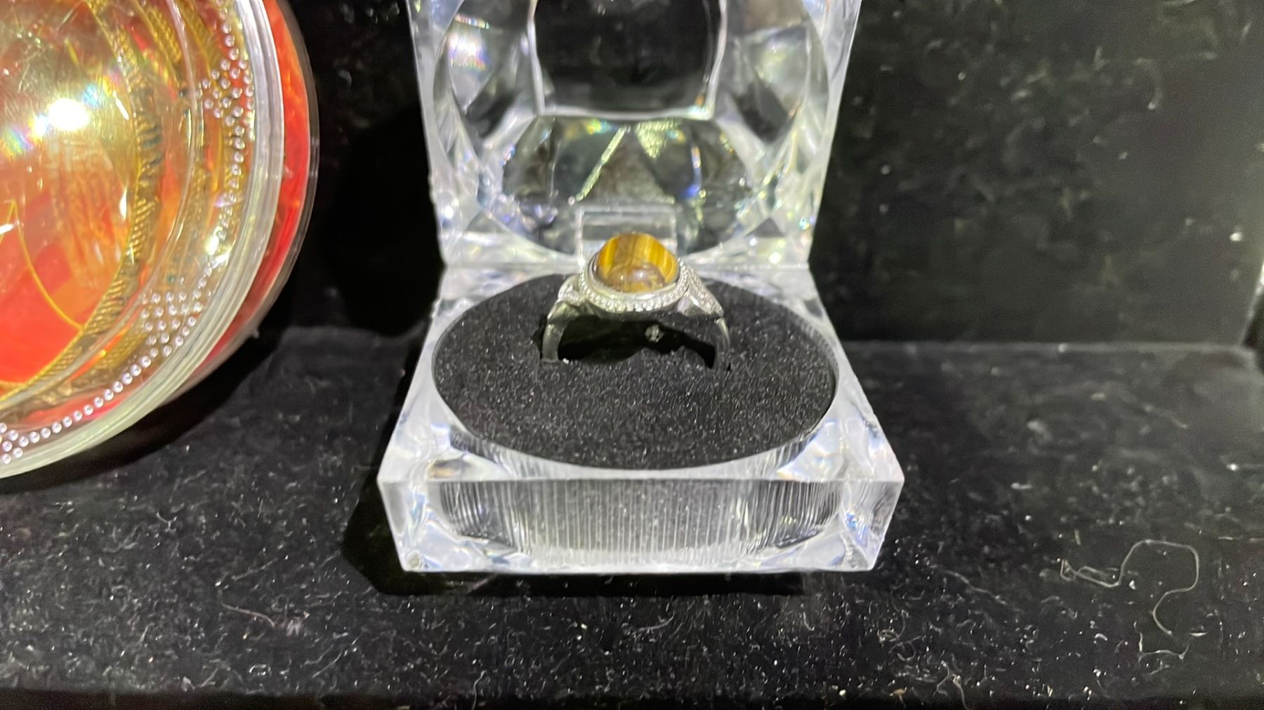 GENUINE ROSE QUARTZ ADJUSTABLE RING RETAIL $480, GENUINE TIGER EYE ADJUSTABLE RING RETAIL $400 AND GOLD PLATED BANGLES RETAIL $480
