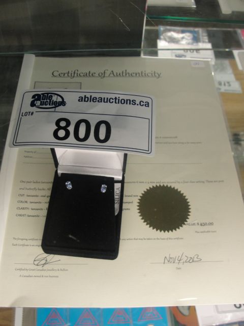 GENUINE TANZANITE EARRINGS IN SILVER - BRAND NEW. INCLUDES $450 CERTIFICATE