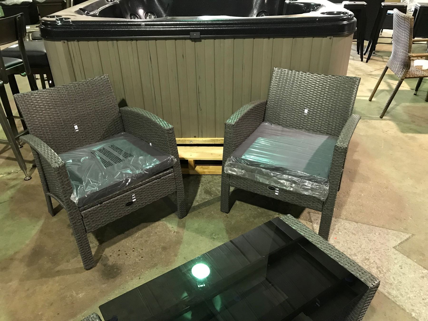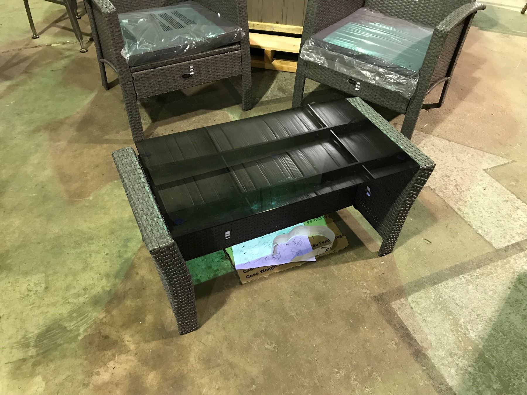 GEORGIA CONVERSATION SET 4 PC. PATIO LIVING SET WITH LOVE SEAT, 2 CHAIRS, GLASS TOP COFFEE TABLE AND CUSHIONS