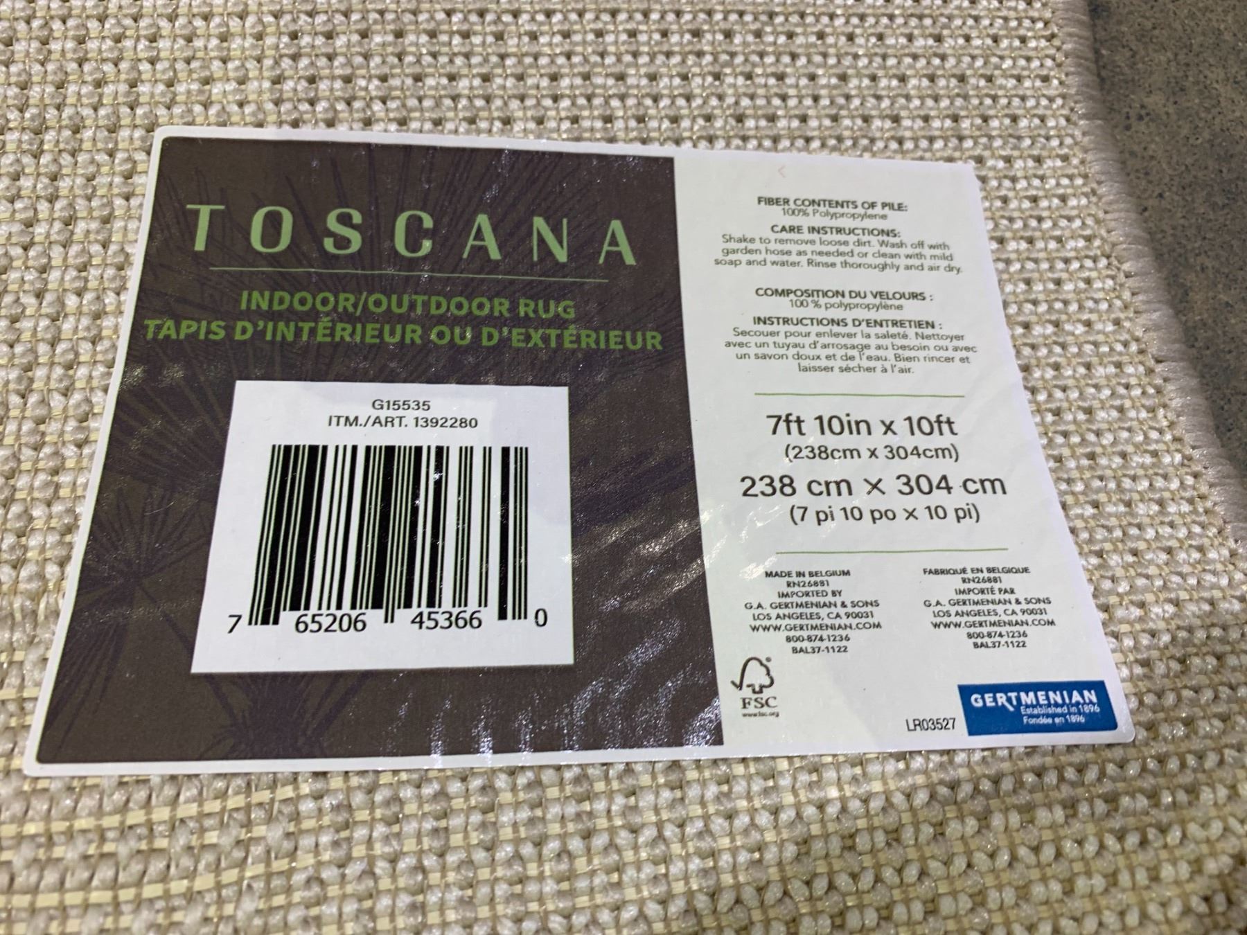 GERTMENIAN TOSCANA INDOOR/OUTDOOR AREA RUG 10'X7'8" (SOME SPOT CLEANING REQUIRED)