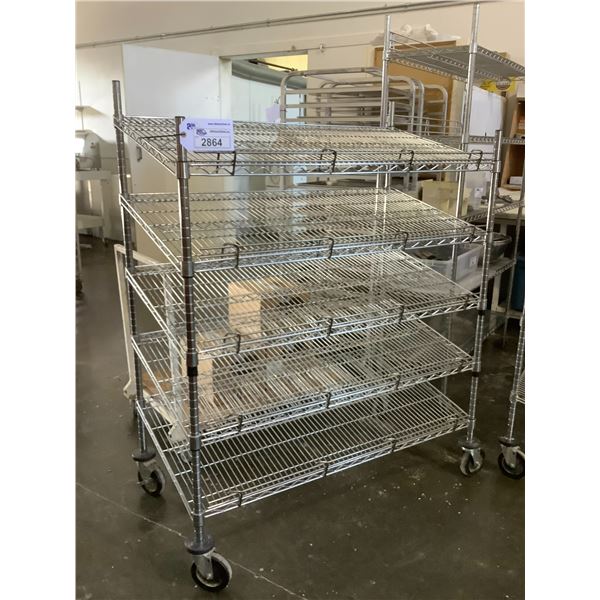 NSF STAINLESS STEEL 5 TIER ANGLED MOBILE RACK 48"X24"X56"H