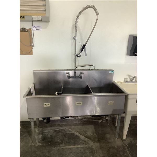 *STAINLESS STEEL 3 BAY RINSE STATION WITH RINSER *REQUIRES PLUMBING DISCONNECT*