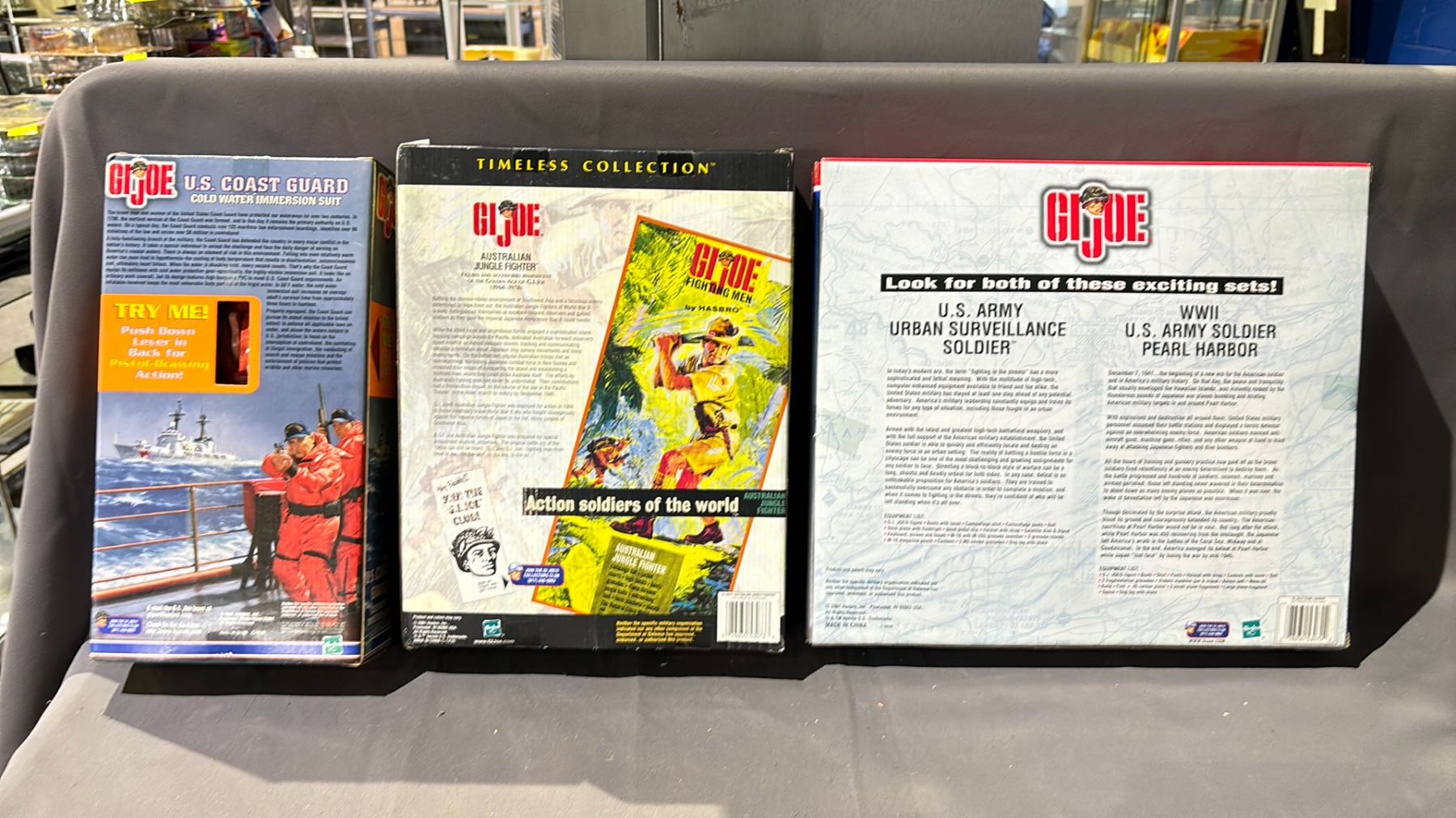 GI JOE U.S. COAST GUARD COLD WATER IMMERSION SUIT FIGURE, GI JOE WW 2 U.S. ARMY SOLDIER PEARL HARBOR FIGURE, AND GI JOE TIMELESS COLLECTION AUSTRALIAN JUNGLE FIGHTER FIGURE