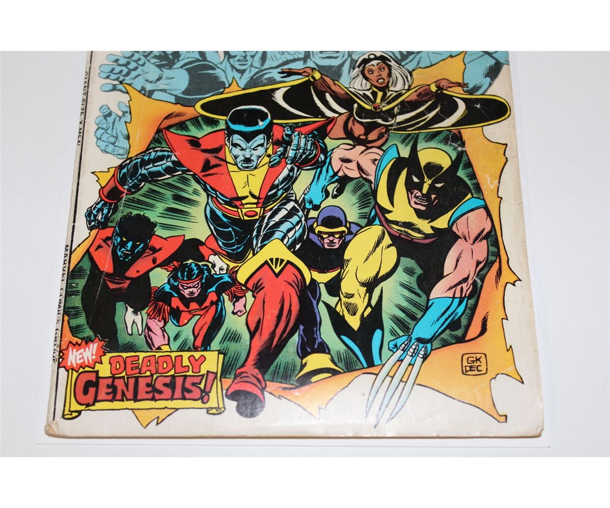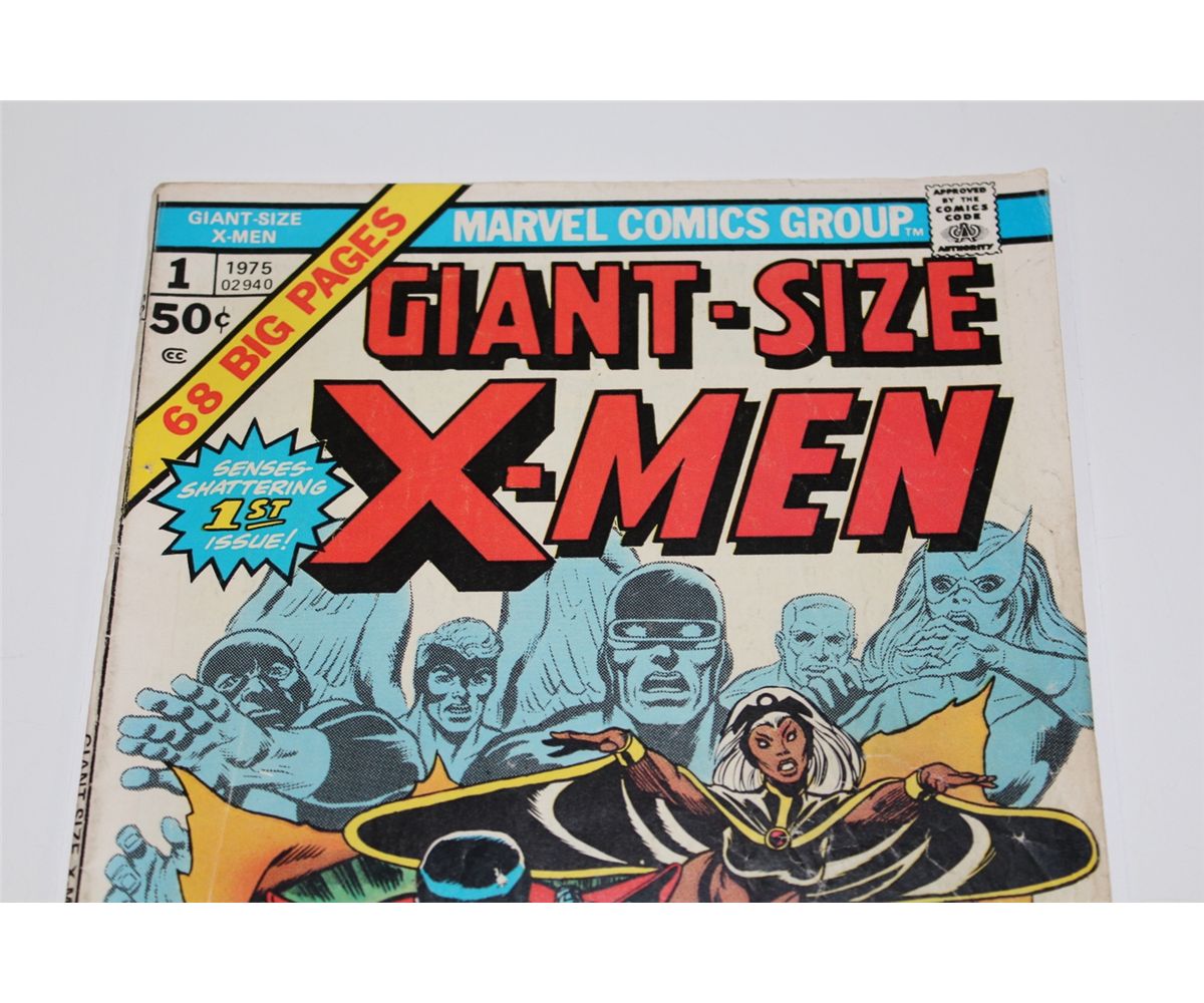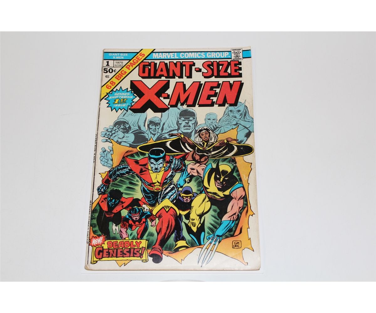 GIANT SIZE X-MEN #1 (1975) 1ST APP. NEW X-MEN, 2ND FULL APP. WOLVERINE. ONE OF THE BIGGEST KEYS FROM FROM THE ENTIRE BRONZE AGE OF COMICS - LOWER GRADE WITH 1.5 INCH SPINE SPLIT BUT COMPLETE, NO PIECES OUT & SUPPLE. SOLID COPY