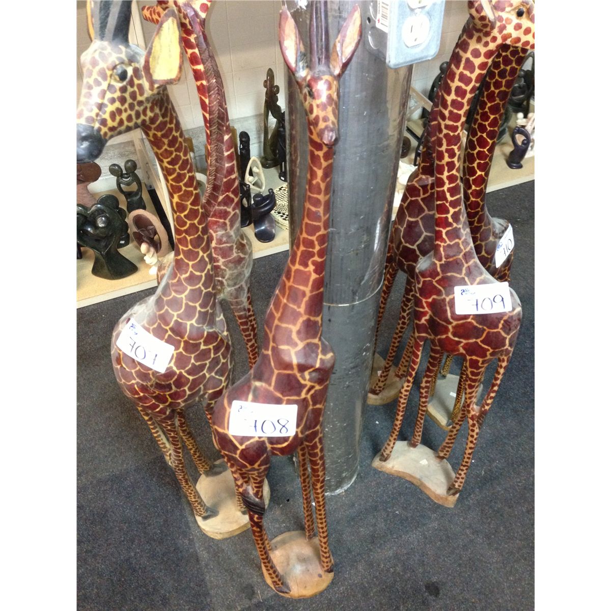 GIRAFFE, CARVED FROM A SINGLE PIECE OF AFRICAN MAHOGANY, 48  TALL