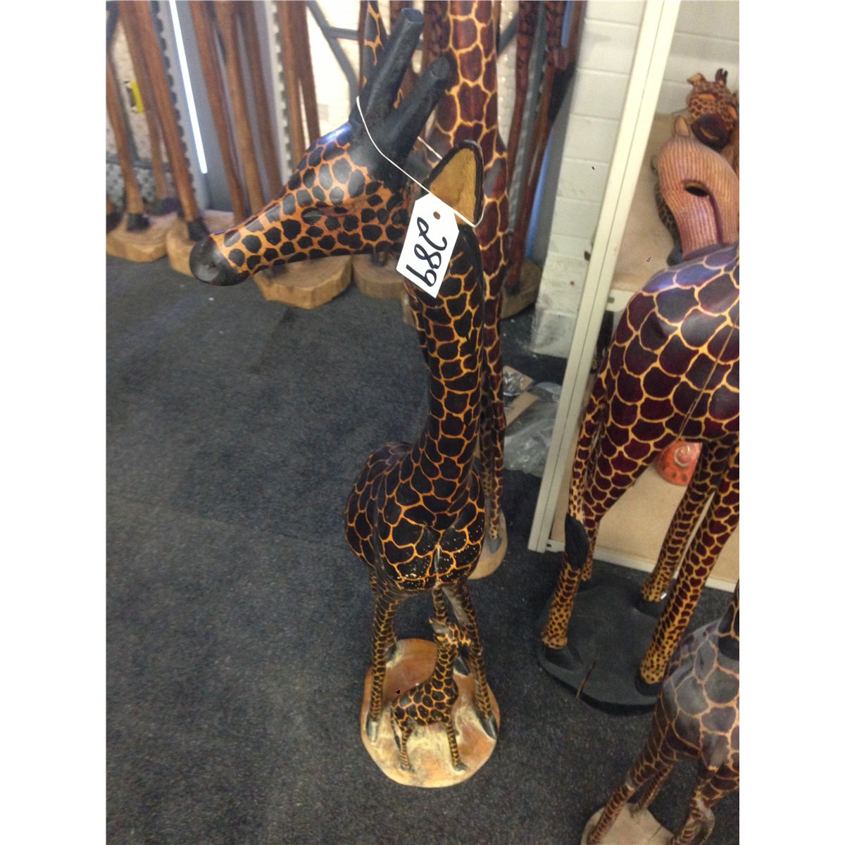 GIRAFFE, CARVED FROM A SINGLE PIECE OF AFRICAN MAHOGANY, 49  TALL