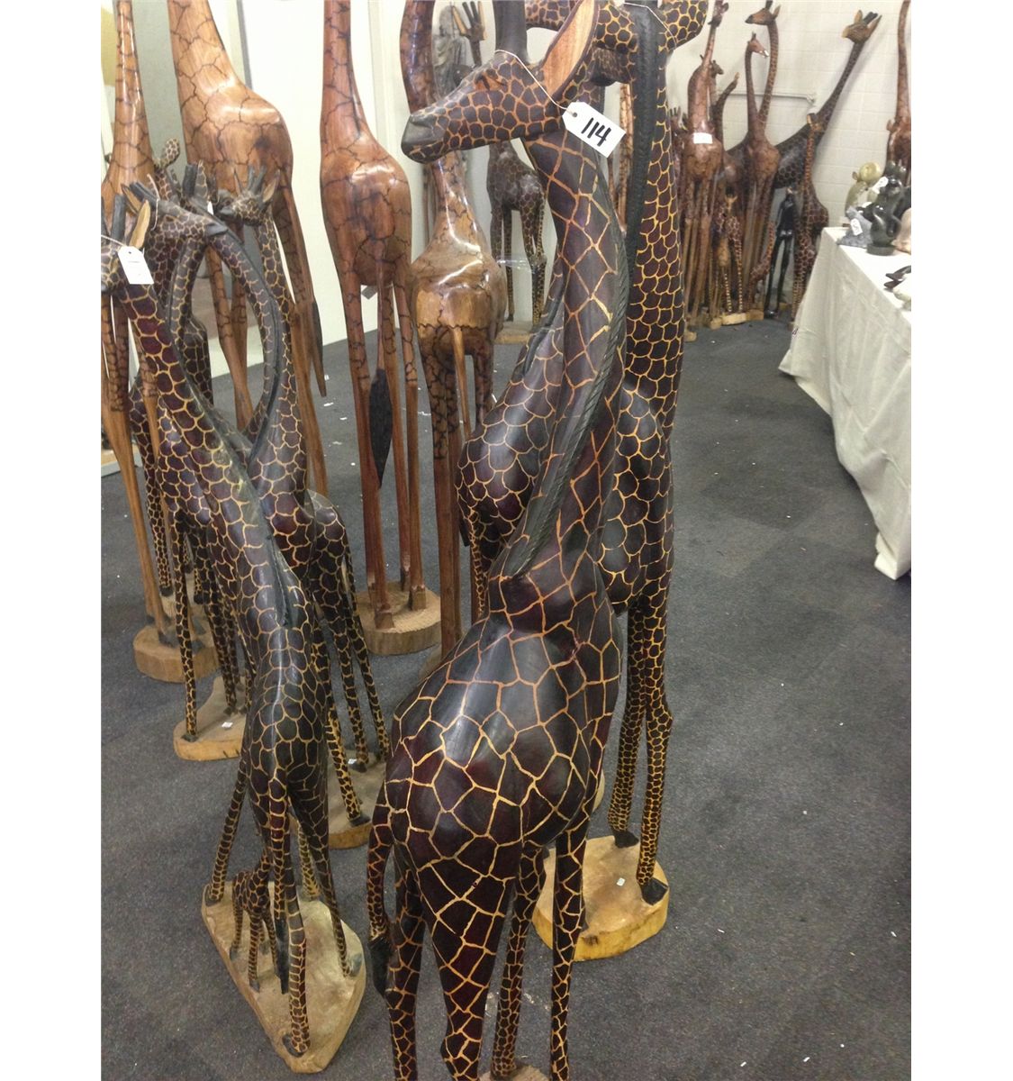 GIRAFFE, CARVED FROM A SINGLE PIECE OF AFRICAN MAHOGANY, 71" TALL