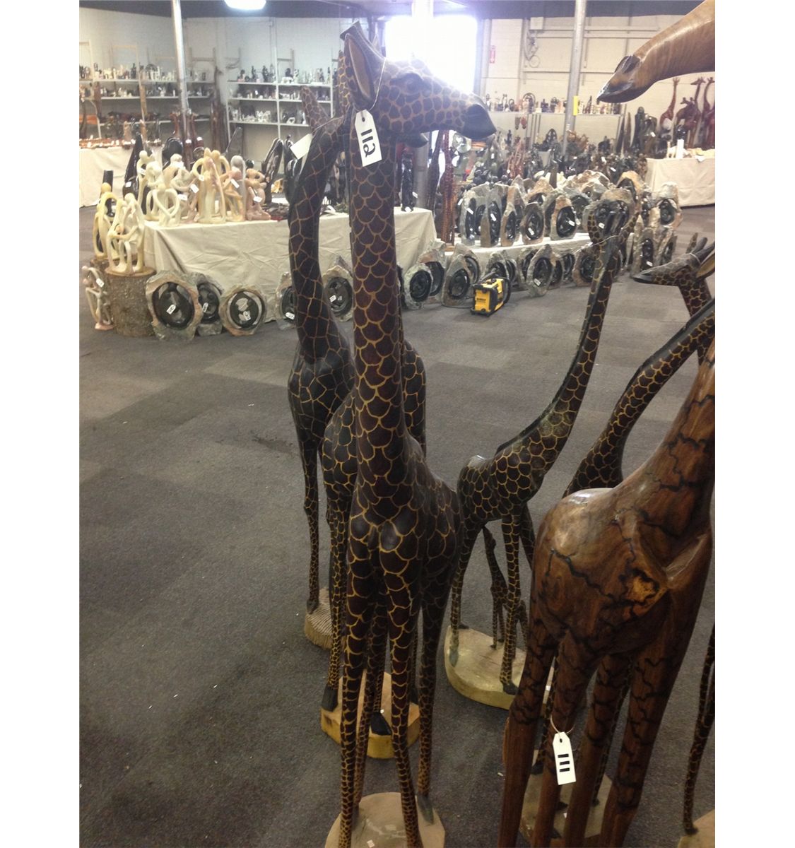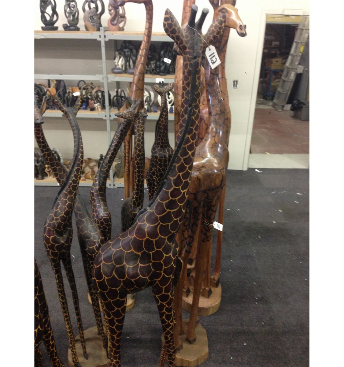 GIRAFFE, CARVED FROM A SINGLE PIECE OF AFRICAN MAHOGANY, 74" TALL