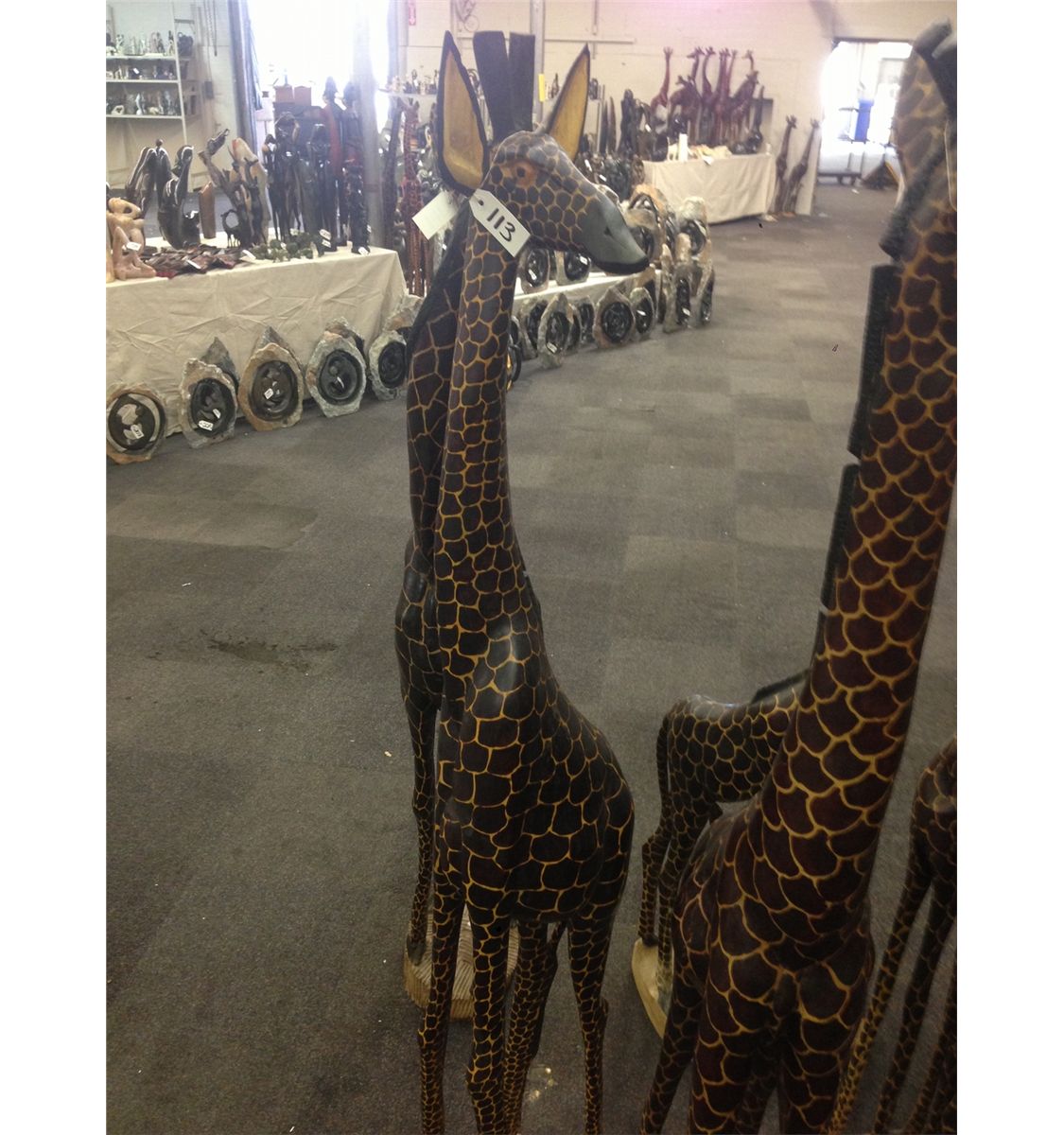GIRAFFE, CARVED FROM A SINGLE PIECE OF AFRICAN MAHOGANY, 74" TALL