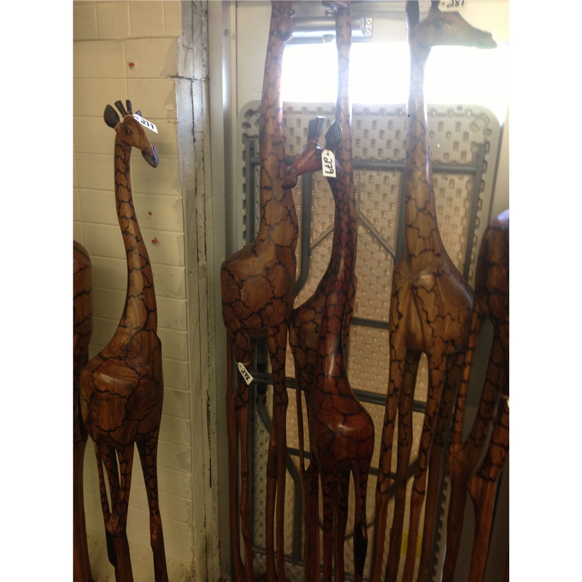 GIRAFFE, CARVED FROM A SINGLE PIECE OF AFRICAN MAHOGANY, 85" TALL