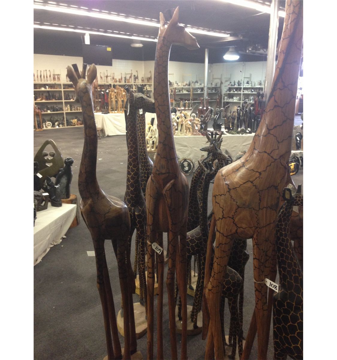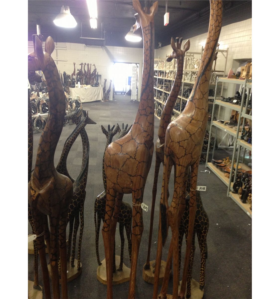 GIRAFFE, CARVED FROM A SINGLE PIECE OF AFRICAN MAHOGANY, 87" TALL