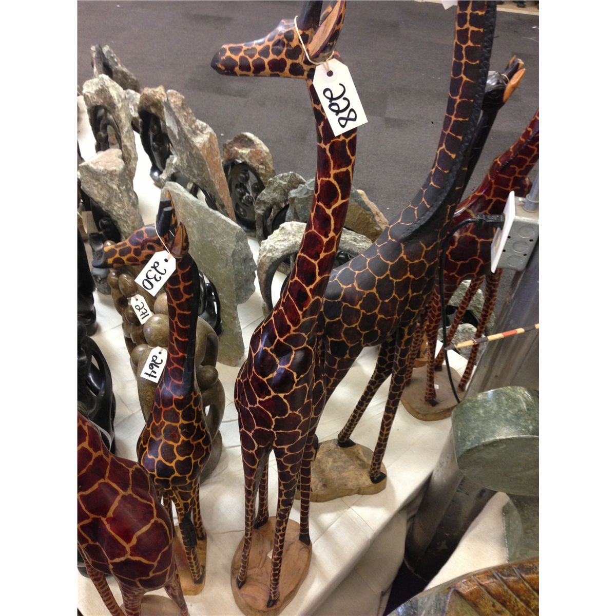 GIRAFFE, HAND CARVED FROM A SINGLE PIECE OF AFRICAN MAHOGANY. 48" TALL