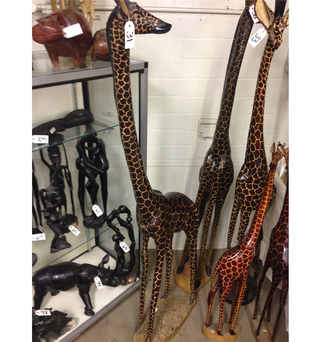 GIRAFFE, HAND CARVED FROM ONE PIECE OF AFRICAN MAHOGANY 72" TALL