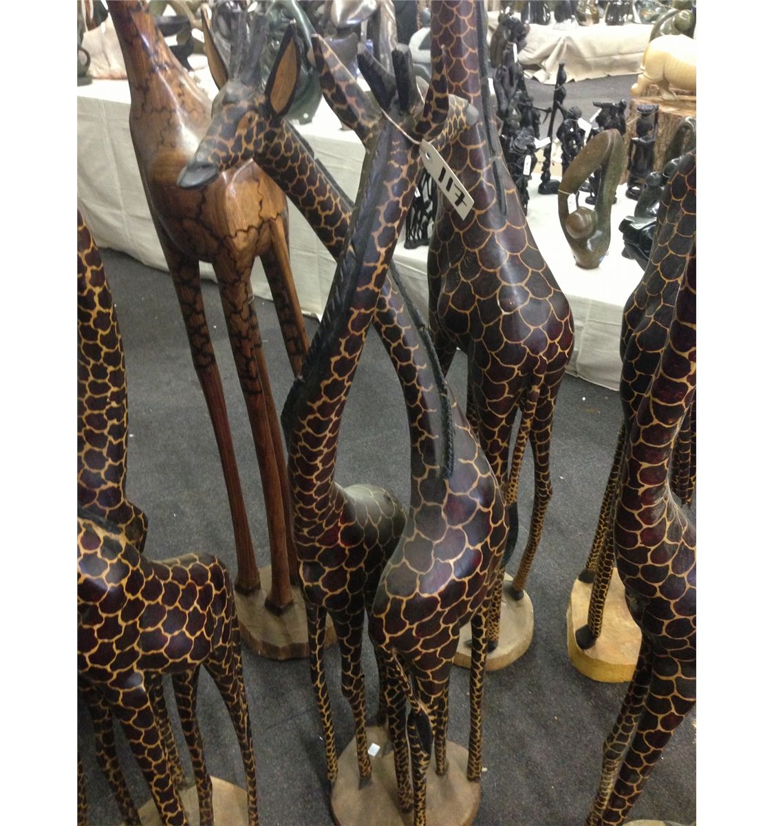 GIRAFFE PAIR, CARVED FROM A SINGLE PIECE OF AFRICAN MAHOGANY, 60" TALL