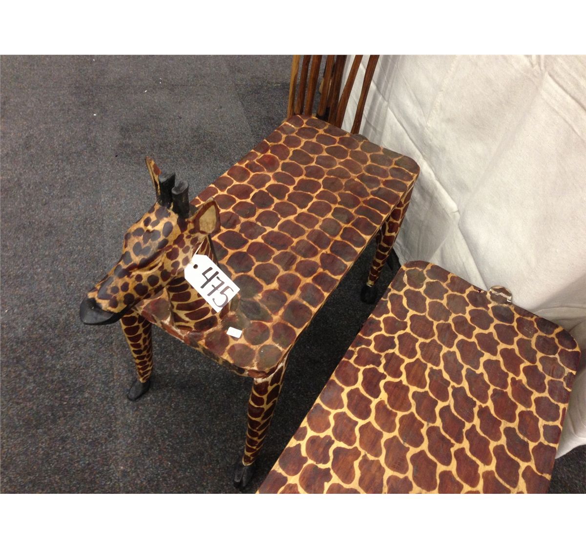 GIRAFFE STOOL, HAND CARVED. 27  LONG 25  TALL