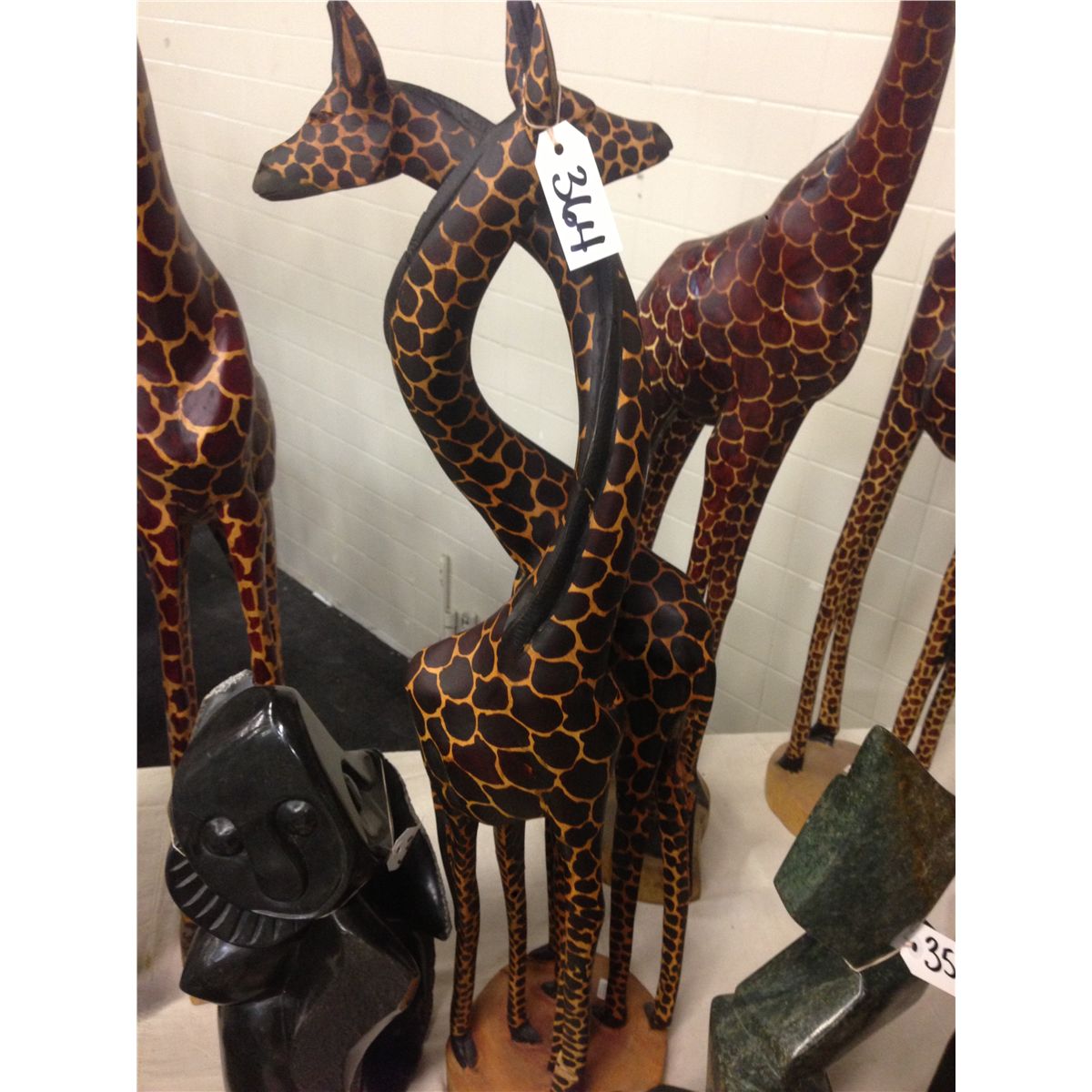 GIRAFFE TWINS, HAND CARVED FROM ONE PIECE OF AFRICAN MAHOGANY 36" TALL