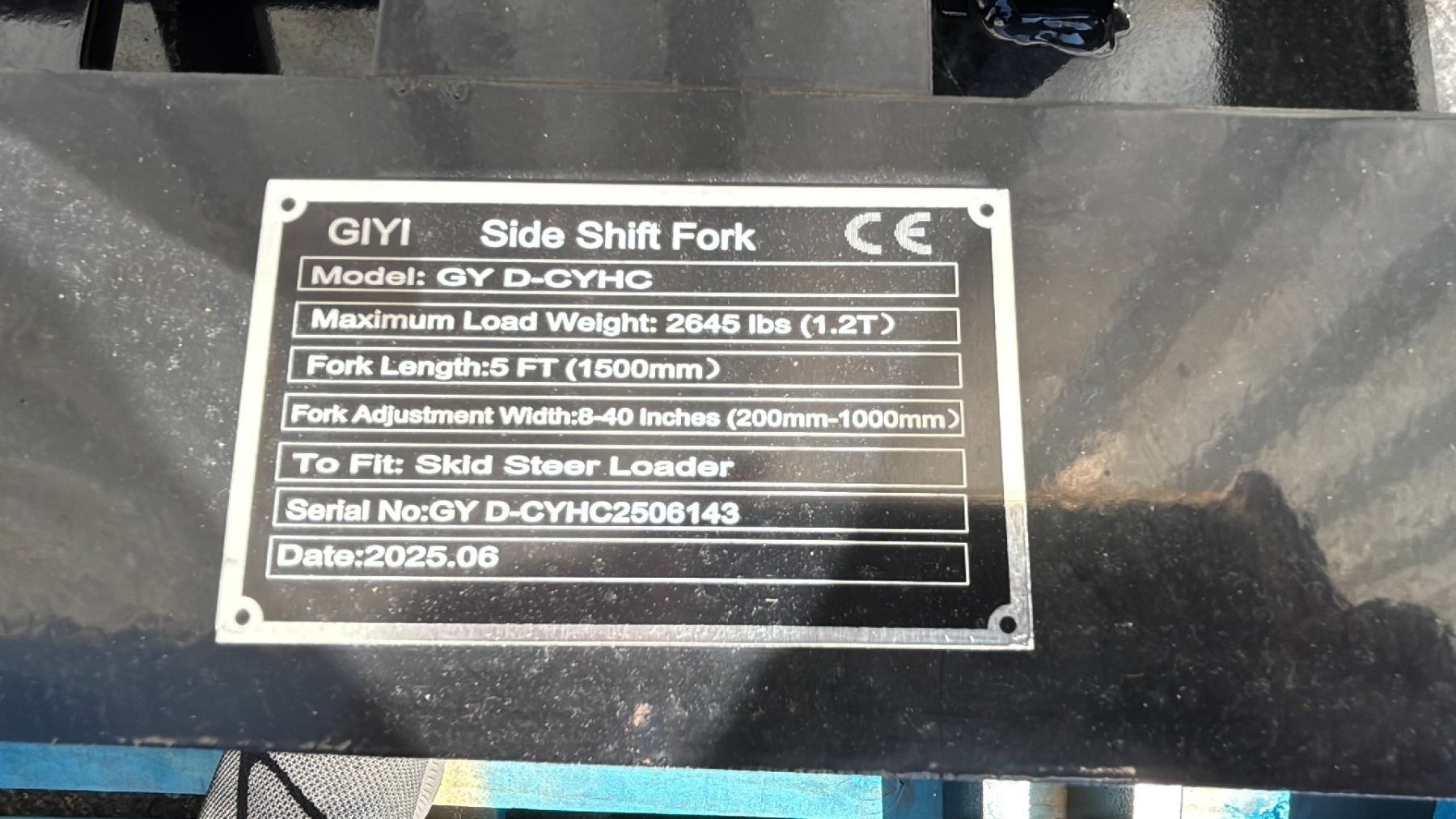 GIYI 2025 INDUSTRIAL HYDRAULIC GY D-CYHC SKID STEER SIDE SHIFT FORK ATTACHMENT WITH 2.5'L FORKS AND A 2645 LB CAPACITY