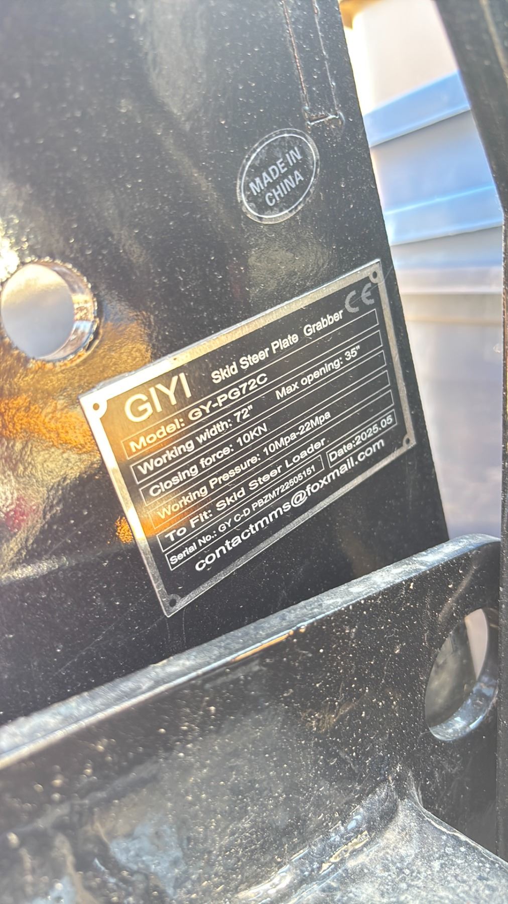 GIYI 2025 INDUSTRIAL HYDRAULIC GY-PG72C 72" SKID STEER PLATE GRABBER WITH A 35" MAX OPENING