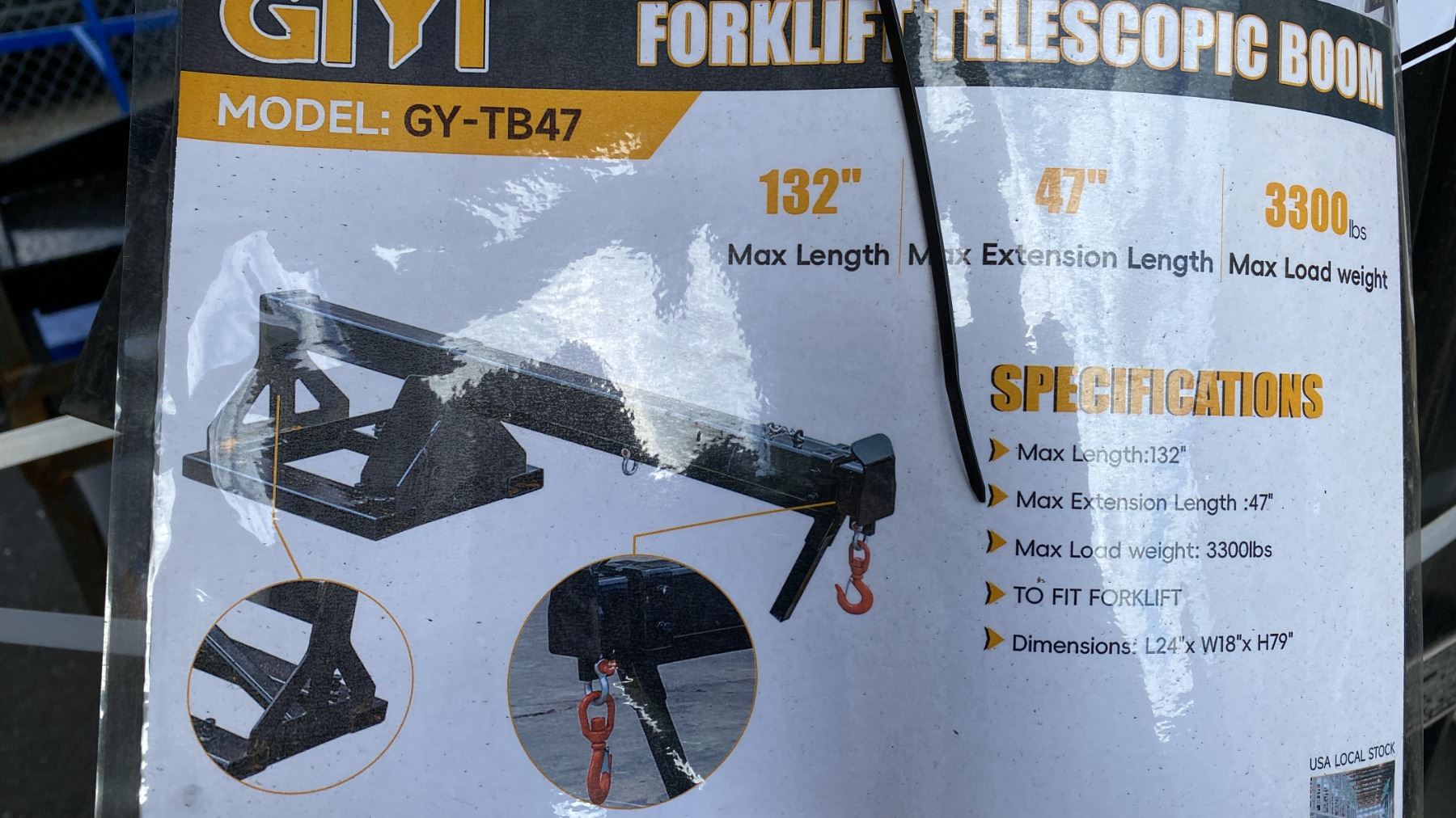GIYI FORKLIFT TELESCOPIC BOOM, MAX LENGTH 132 , MAX LOAD 3300 LBS