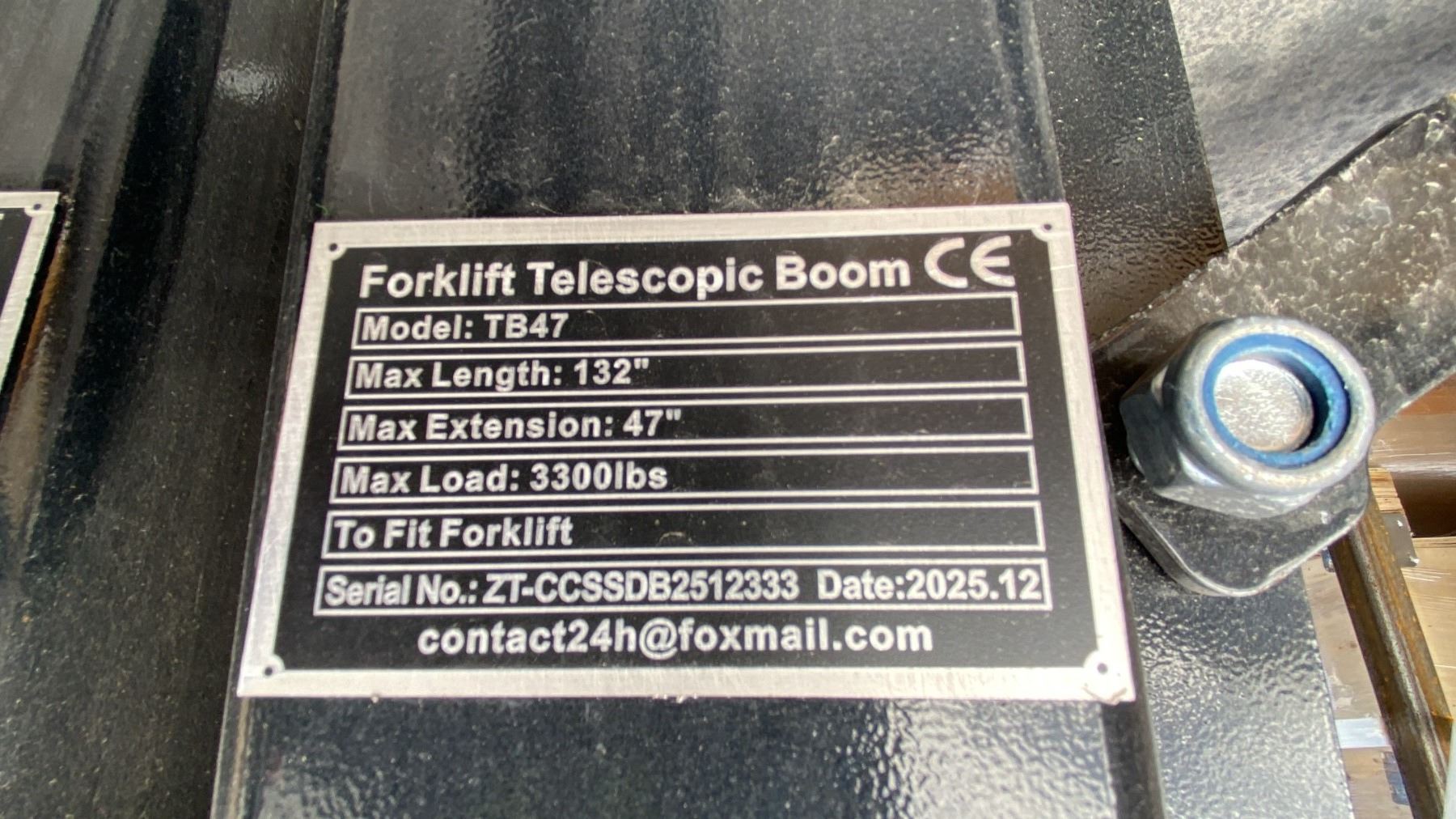 GIYI FORKLIFT TELESCOPIC BOOM, MAX LENGTH 132", MAX LOAD 3300 LBS *LAST DAY REMOVAL*