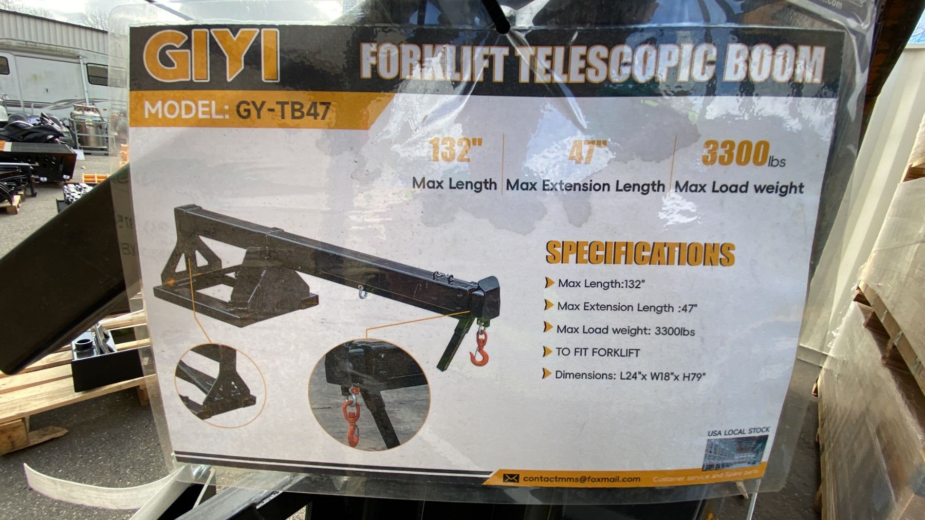 GIYI FORKLIFT TELESCOPIC BOOM, MAX LENGTH 132", MAX LOAD 3300 LBS *LAST DAY REMOVAL*