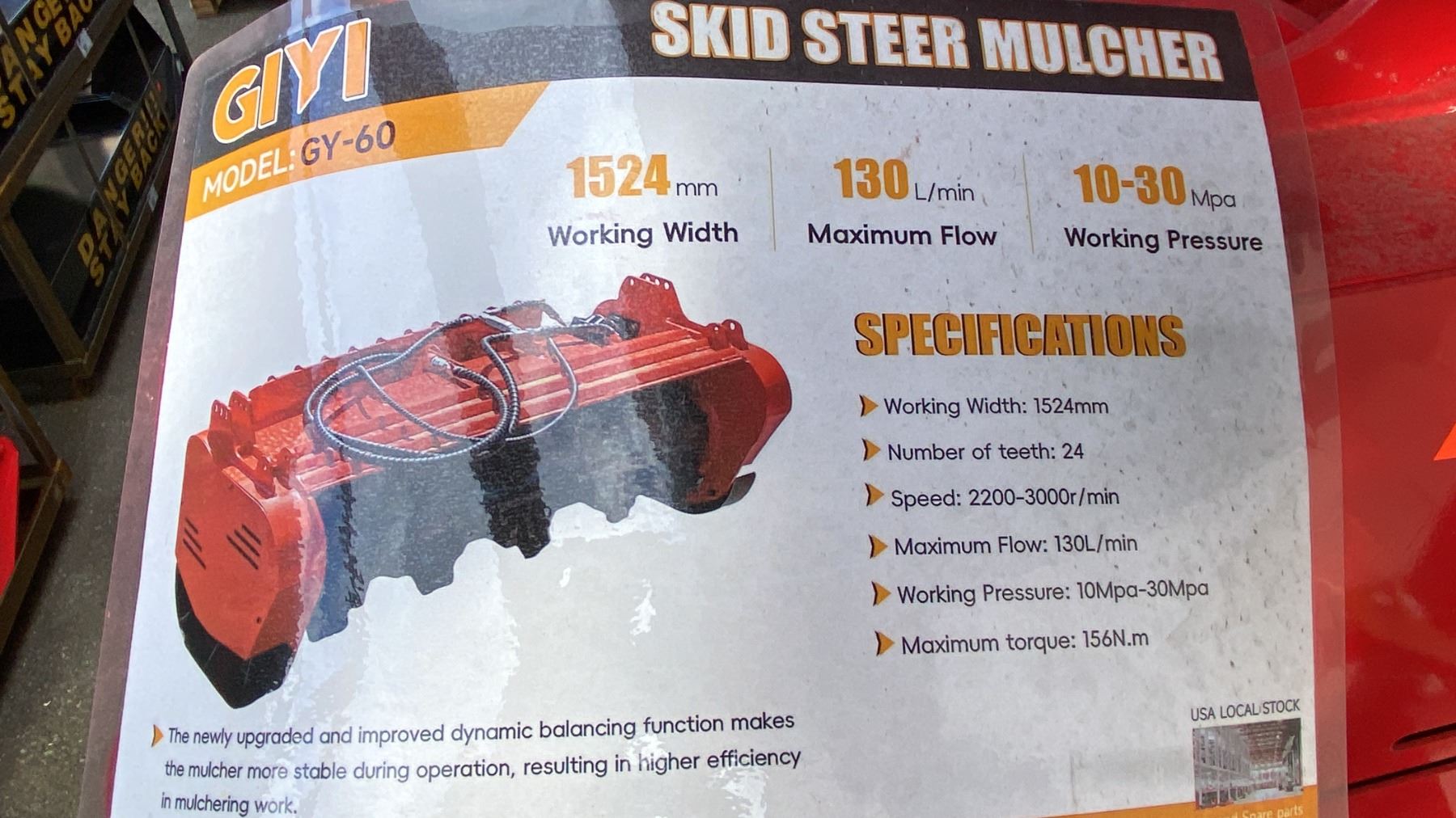 GIYI GY-60 RED INDUSTRIAL SKID STEER MULCHER ATTACHMENT